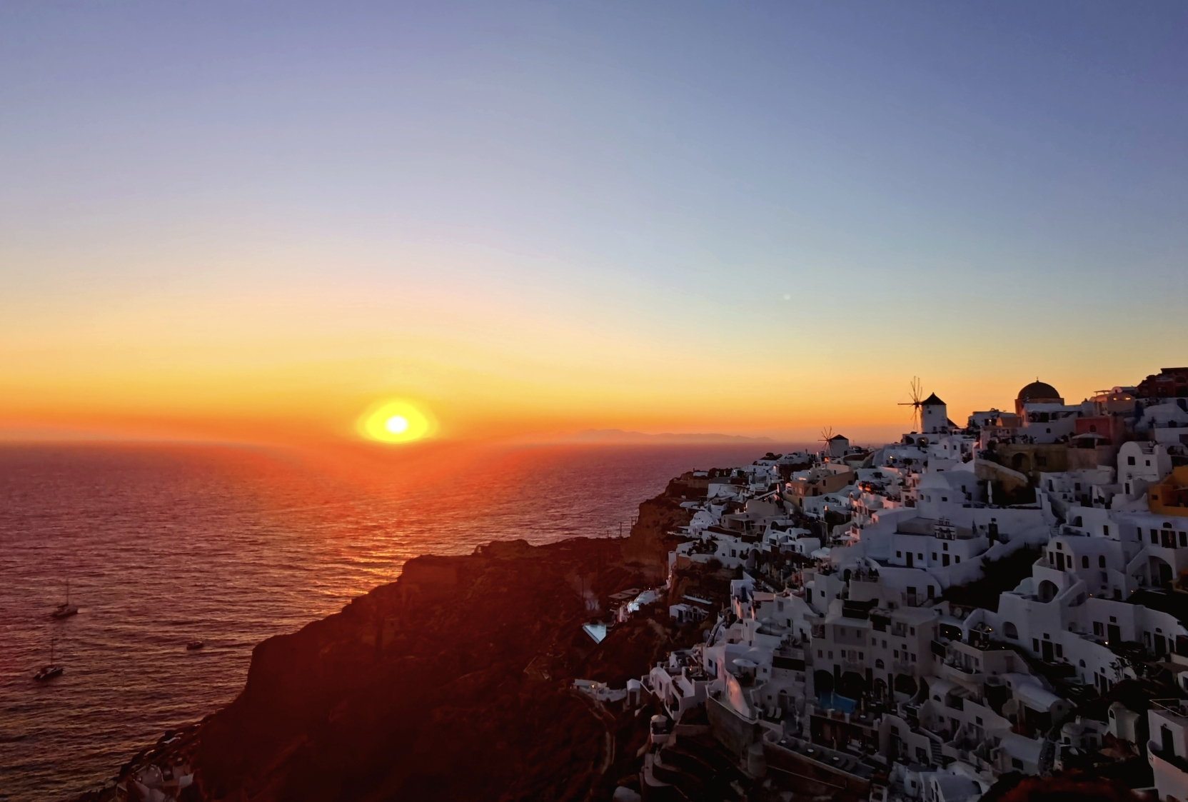 圣岛Oia镇,从Fira镇坐旅游bus,每人1.6欧,到达Oia镇后,可以在小镇悬崖走廊好好逛一逛,差不多8点的时候,去到最东边看日落,跟着旅游的人流走就对啦