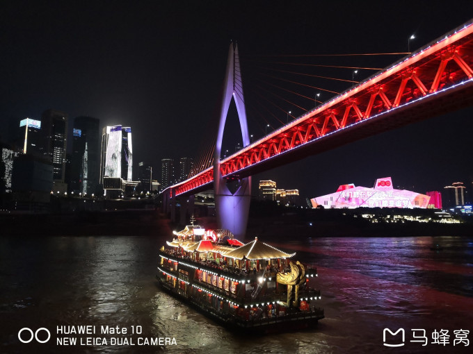 嘉陵江和千厮门的夜景果然震撼,江面上还有金碧辉煌的游轮,美仑美奂。