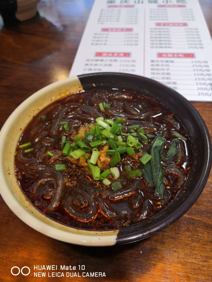 两小只开心地拍照。我们走走停停,买点凤爪尝尝,晚饭选择了酸辣粉,味道果然很棒!