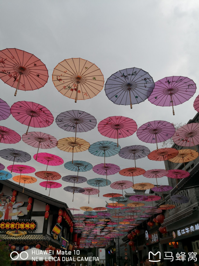 五彩缤纷的花伞,很梦幻,适宜打卡。记得凤凰古城也有一样的风景。