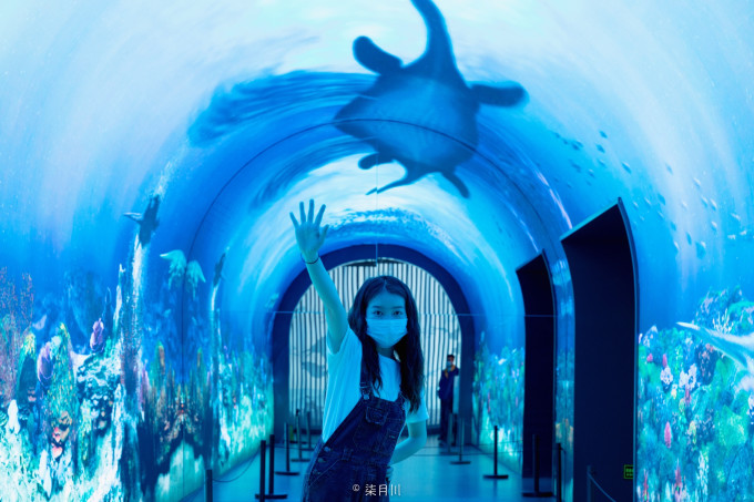 贵阳地质博物馆免费开放,需要提前预约。里面有四个展厅,其中“神秘贵州”以“古生物王国”为主题,网红海洋投影隧道就在这个展厅。
