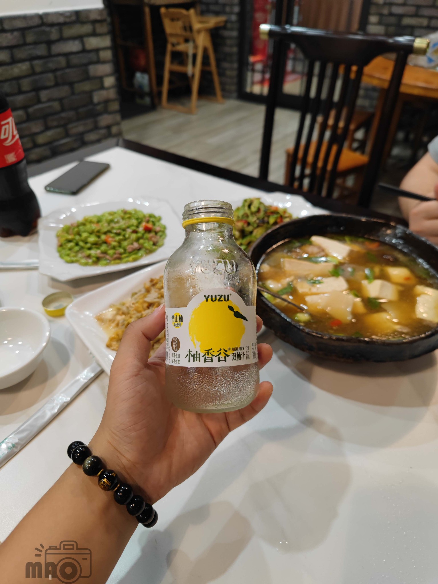 回去吃饭去。听说有柚子汁,怕尝试失败,不敢拿大的,就拿了一小瓶,味道还不错。