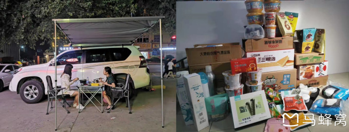 车辆装备:车顶行李箱,后排座椅放倒,再放上张1.2*2m的床垫,平铺好了睡我们俩人毫无压力;平时不怎么用的东西放到行李箱,露营的时候,把所有行李放到前排座椅上,我们睡到后排的床垫上。