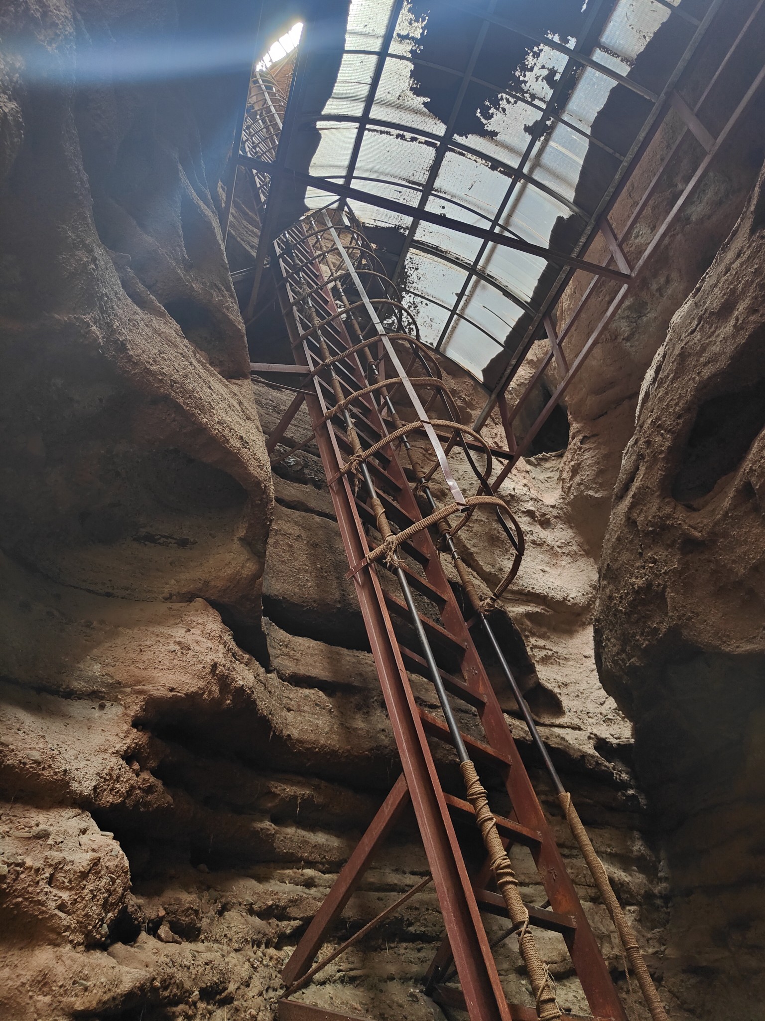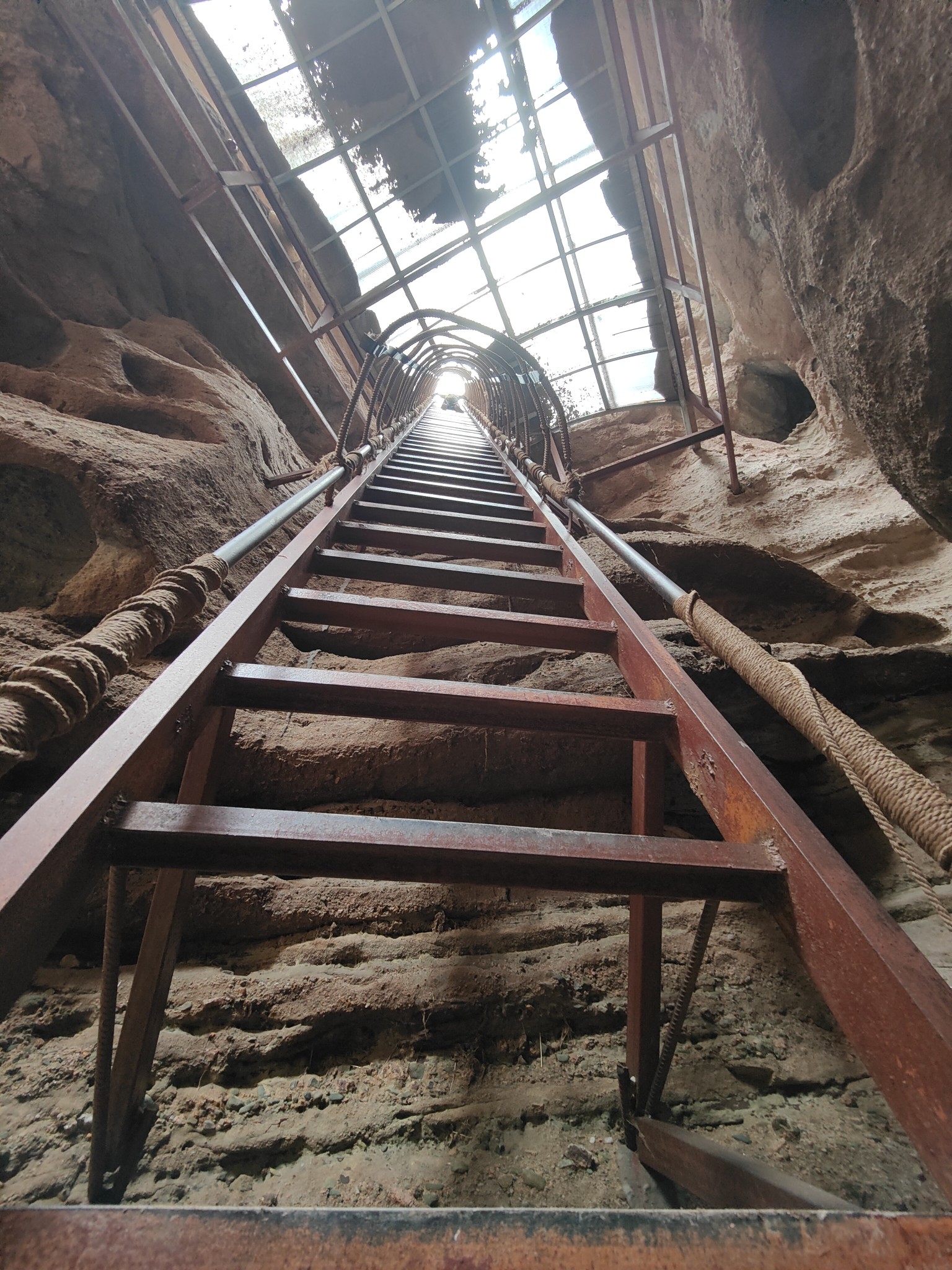 。小平台休息了十分钟,接着继续爬第二段云梯,比第一段要短,依然是垂直悬崖,考验臂力,最后那几级梯子是咬牙上来的,没吃中饭感觉手软啊。