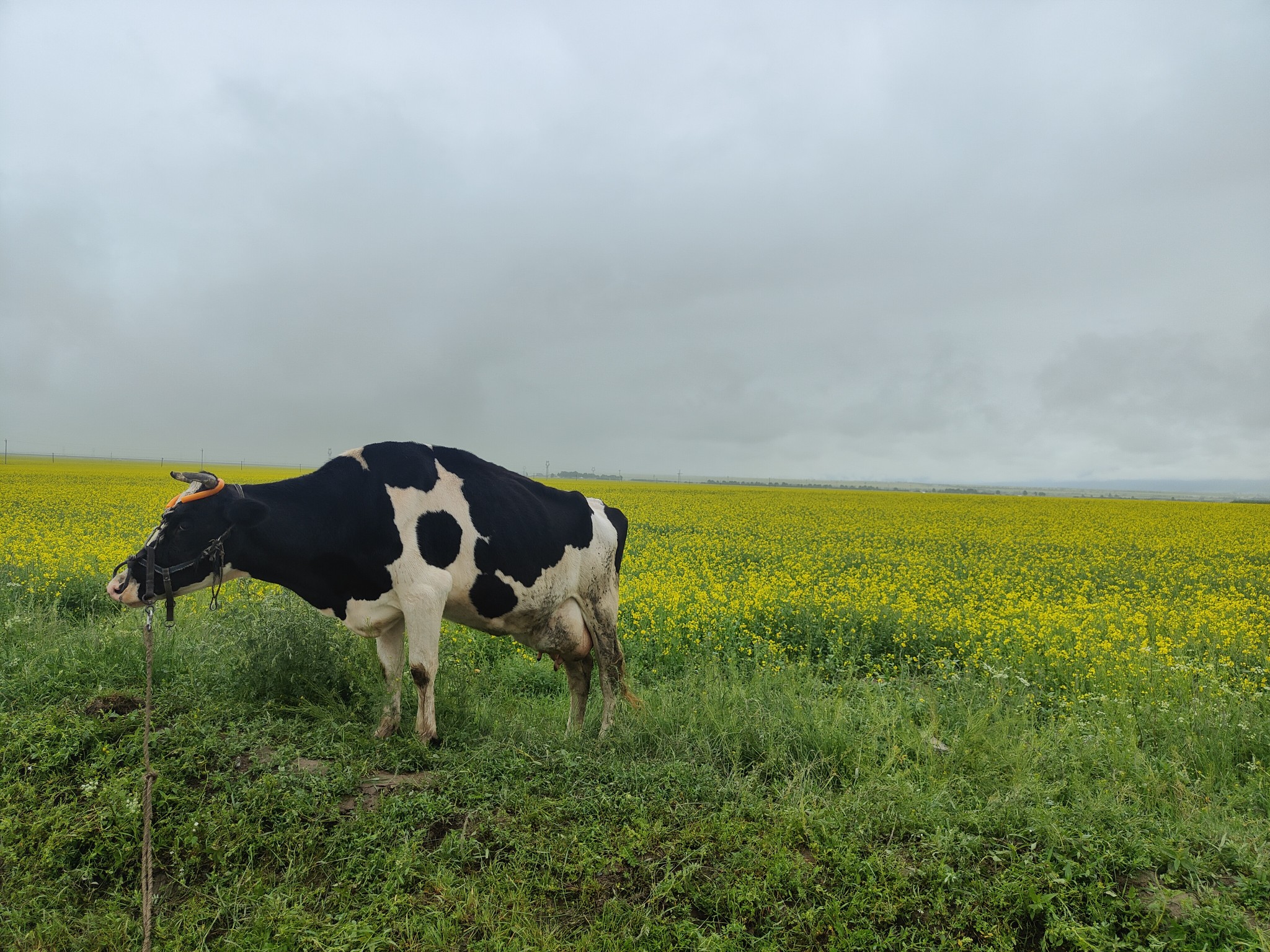 西宁早上细雨绵绵,凉风阵阵,就近在民宿外的古玩城边吃了碗热气腾腾的牛肉面。吃完顿时浑身暖和,精神抖擞。上车直接百度导航去张掖,标注门源油菜花为途经点。车行至门源的时候,刚出隧道立马呈现出开阔的视野,满山遍地的油菜花,远处很像欧洲的小镇感觉。可惜当天天气阴沉,偶尔还飘过小雨,气温也比在西宁要低几度,光靠短袖+风衣已经不能御寒了,赶紧从行李箱翻出厚裤和绒衣,才感觉好些。漫山遍野的油菜花海还没有到盛放期,只零星的散落着一块一块的金黄色。目测至少要天晴一周左右才会大面积开花。所以开到门源花海景区后并没有进入景区,只是后来停车在路边欣赏了一下美景,拍了两张照就继续赶路了。