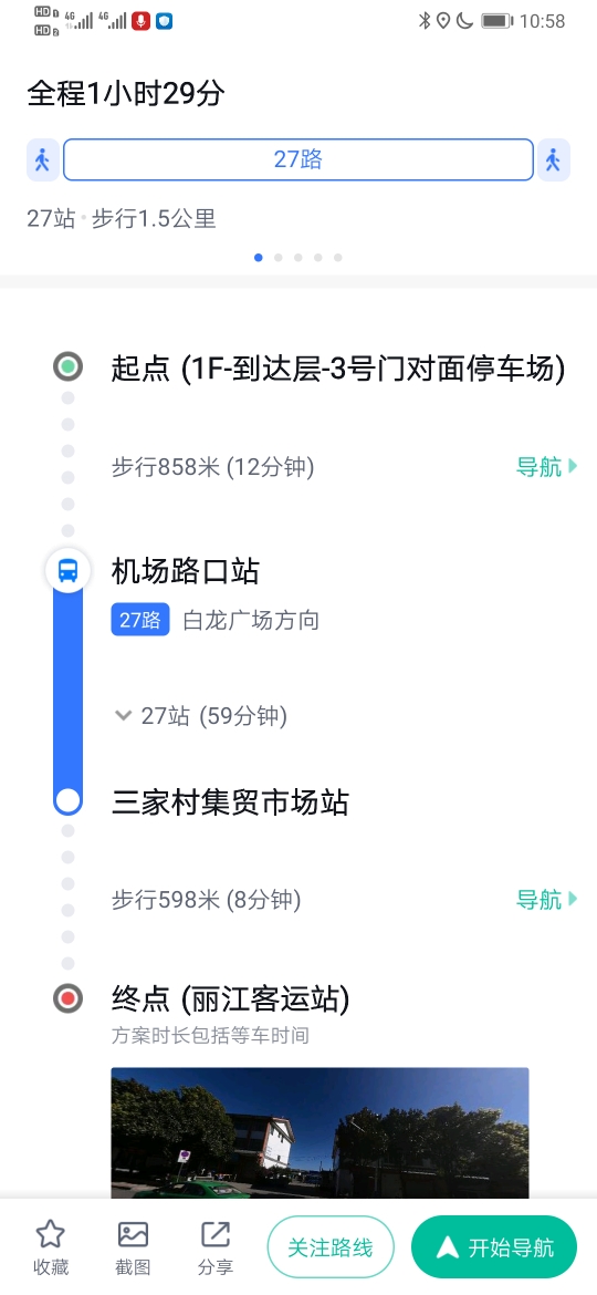 我是从贵阳出发,贵阳机场到丽江三义机场后,过天桥,导航走一条小路10分钟,找到27路公交站机场路口站去丽江客运站(一路没什么人,车上都有座位,不要害怕看到公交站没有人,不要害怕走这节小路,我一开始有点担忧,导航到啥地方了,但是完全无问题),27路发车不多,大概每30分钟可以等到一班车。上车后,马上你就可以绕丽江县城观赏乡村风景,坐27站共计1小时15分,坐到丽江古城周边的三什么集贸市场站,下车几分钟走路就到丽江客运站(划重点,请关注丽江交运微信公众号,提前定客车票丽江到香格里拉,66元每人左右),丽江客运站出发高速路2小时30分,抵达香格里拉客运站。