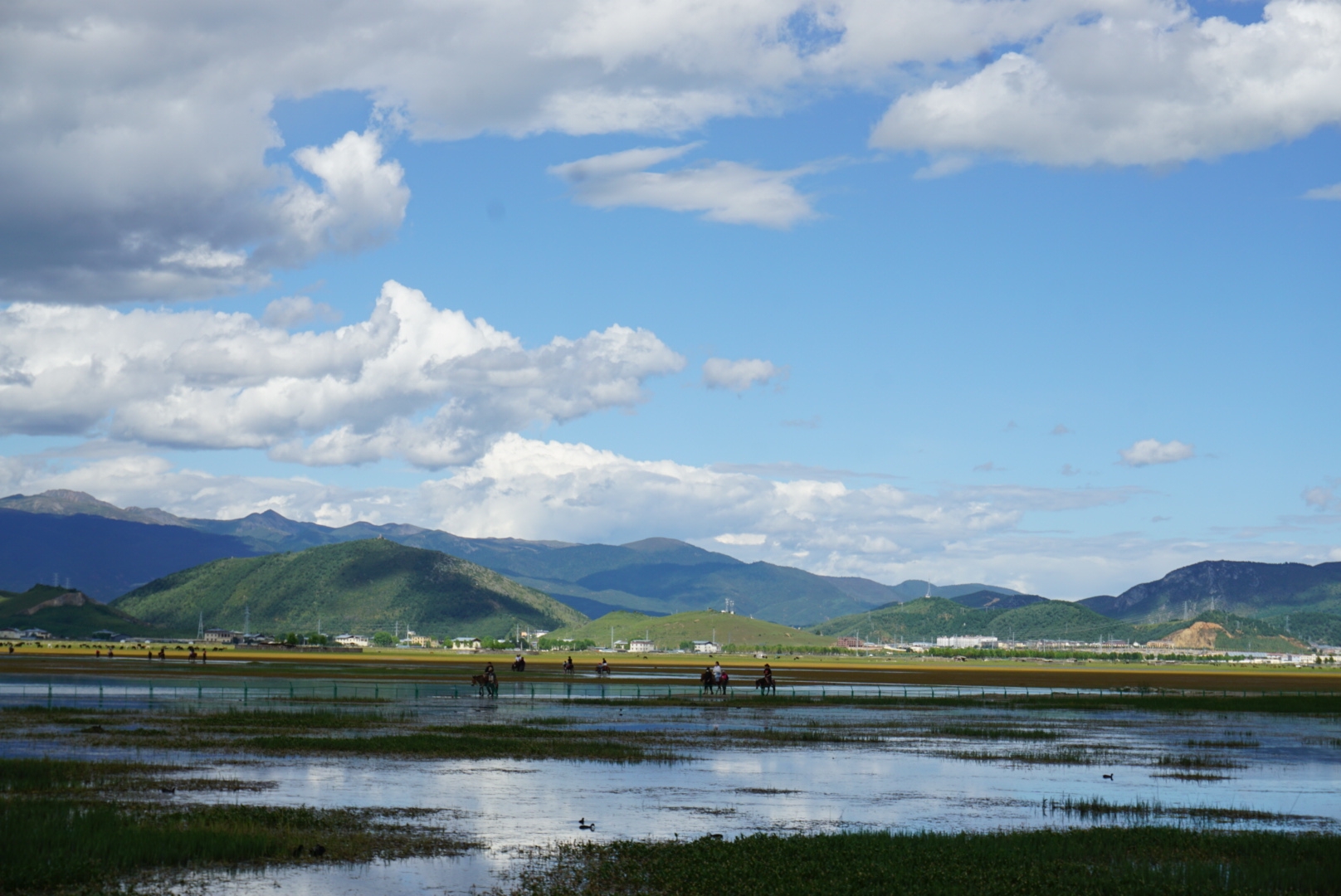 早上8点多在酒店附近吃早餐,沿着走长征大道走300米多,到3路公交线农贸市场站,坐到红太阳广场(州政府旁边,毛主席爷爷的雕塑像,公交2元每人),红太阳广场12路可以直达纳帕海依拉草原,但是上午12路和下午12路,走两条不同的环湖路线,不停车,随叫随停,12路景色太美,打车包车也可以,不过感觉没必要。12路上午路线主要是环海(划重点,在贡什么马场下车,上观景台),下午路线主要是是湿地草原,都美,不能错过,上午下午都去一趟。