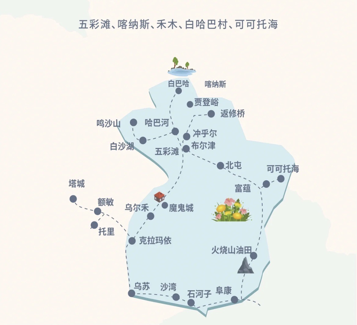 虽然天山把新疆分为南北,严格意义上的北疆其实是阿勒泰地区,自驾的常规路线是从乌鲁木齐开始到奎屯结束走一个环线。后续可以前往其他地区或者返回乌鲁木齐。