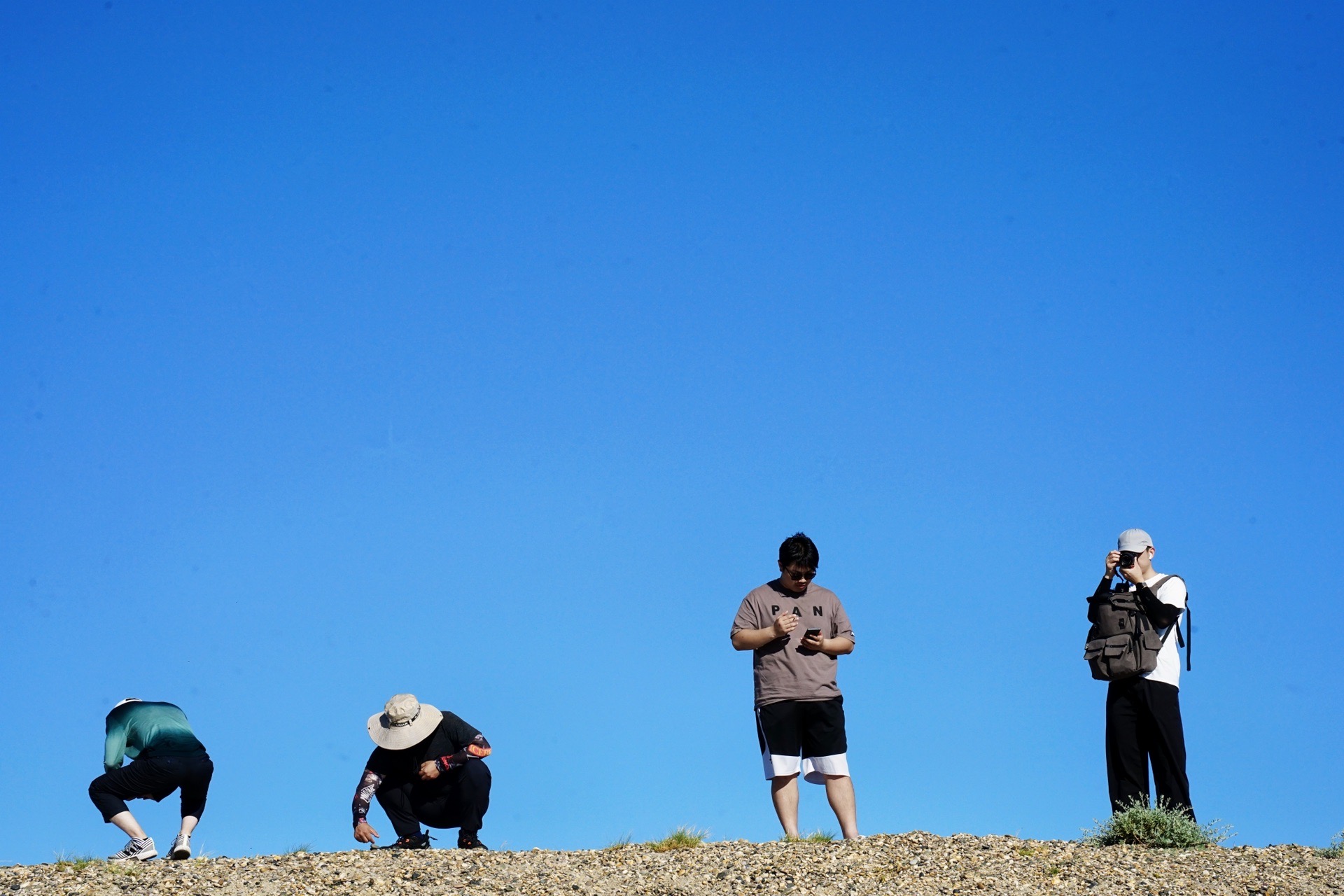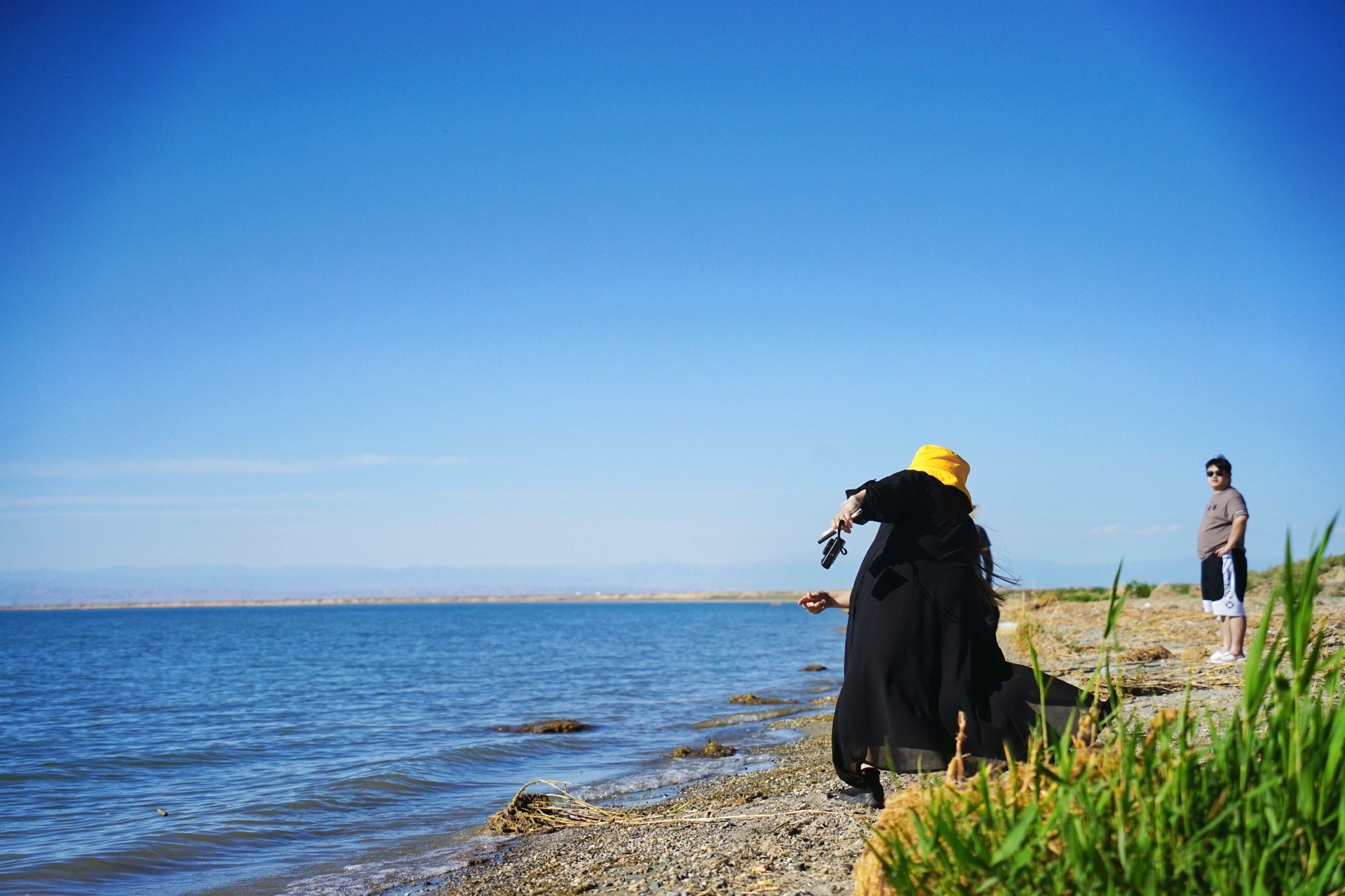 在一天中太阳最毒的时候,我们到达乌伦古湖。乌伦古在蒙古语的意思是云雾升起的地方,因为是咸水湖,偶尔也有人叫它新疆的海。