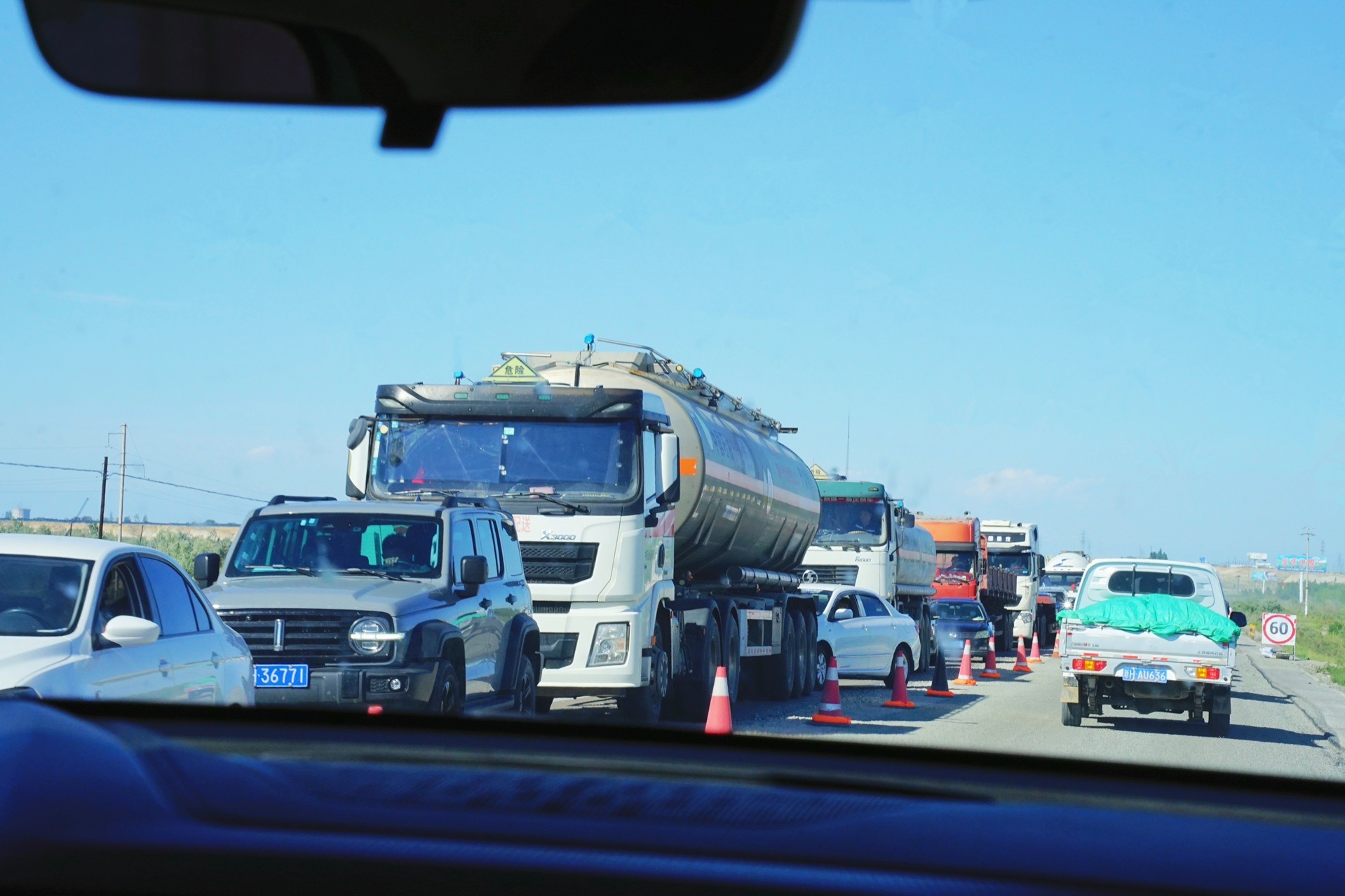 原计划是要环湖看一下“水上魔鬼城”的。一是太热了,二是怕来不及赶五彩滩日落,一群人完全没有犹豫就决定放弃这个计划,直接启程,车里吹空调才是王道。这可真是一个永远言弃的团队。