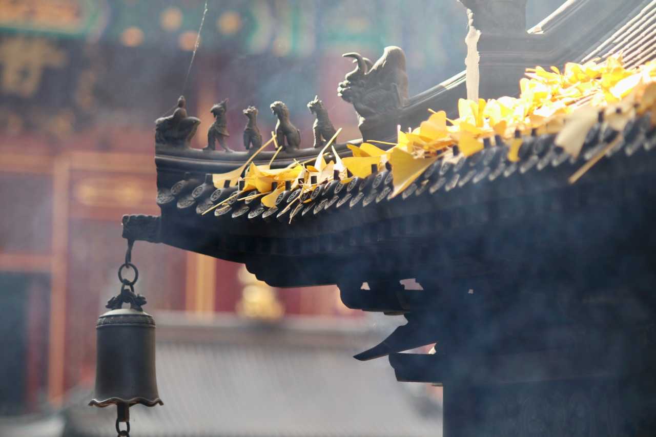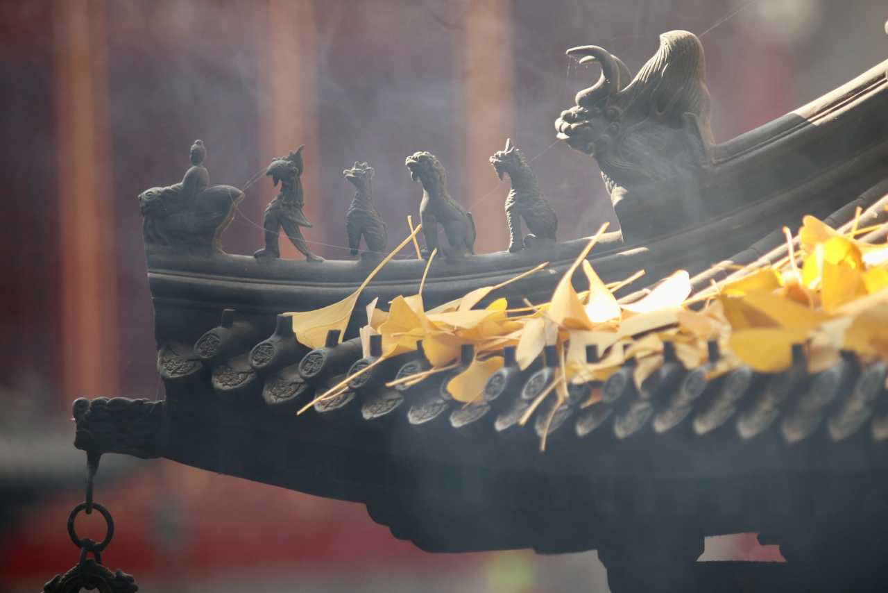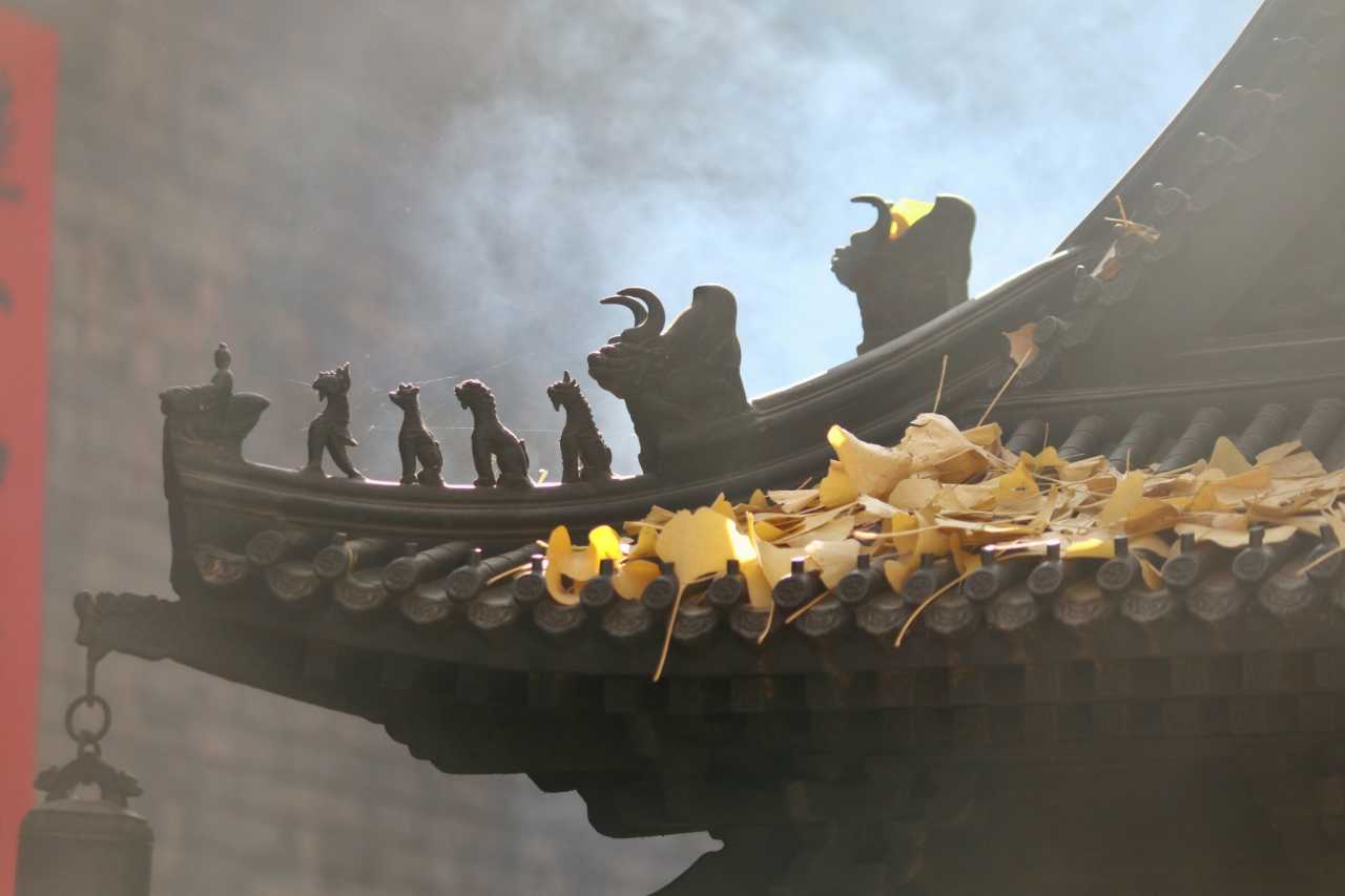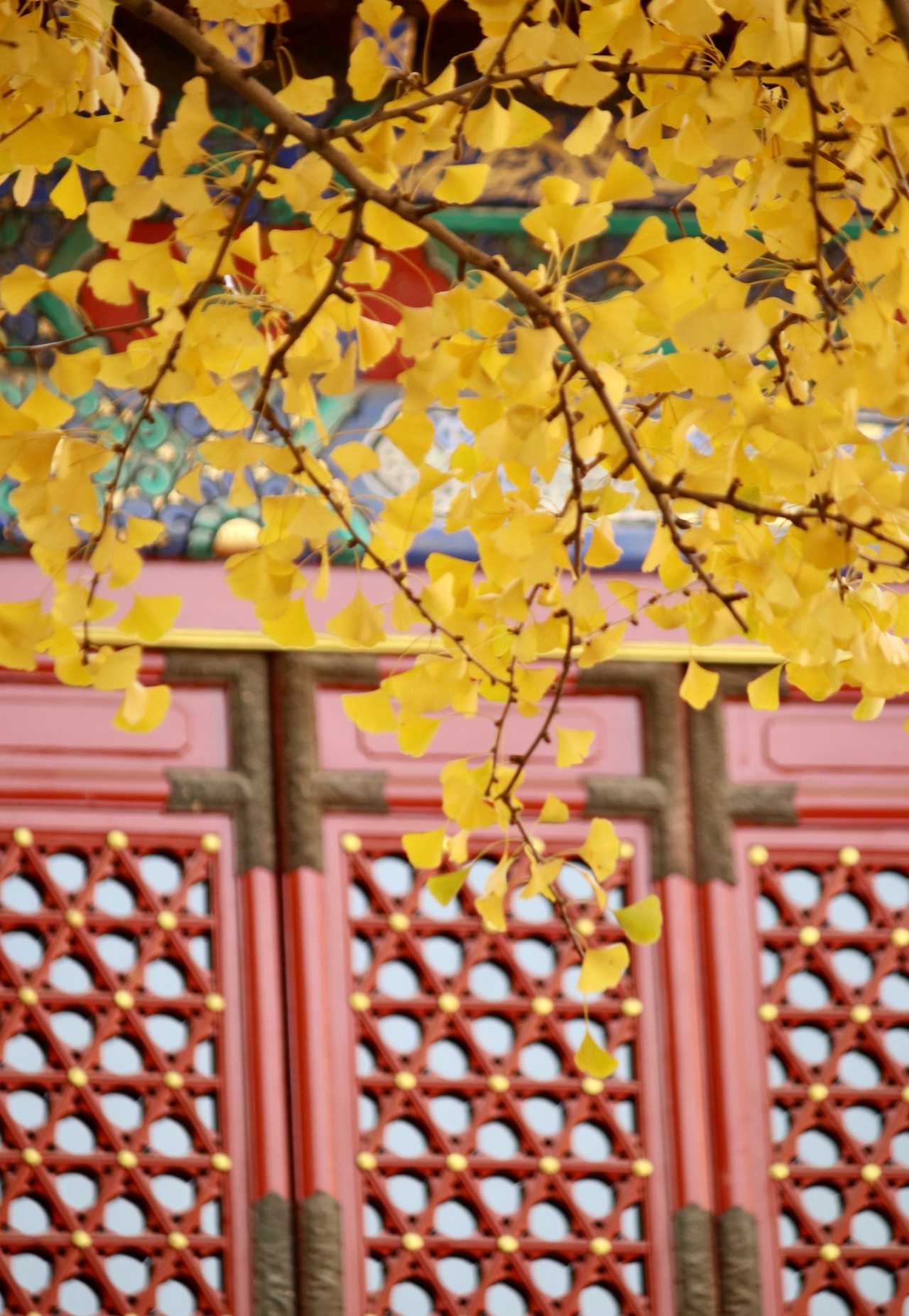 二处灵光寺:玉佛殿前有一株很高大的银杏树,目前黄了90%,周末去看正好