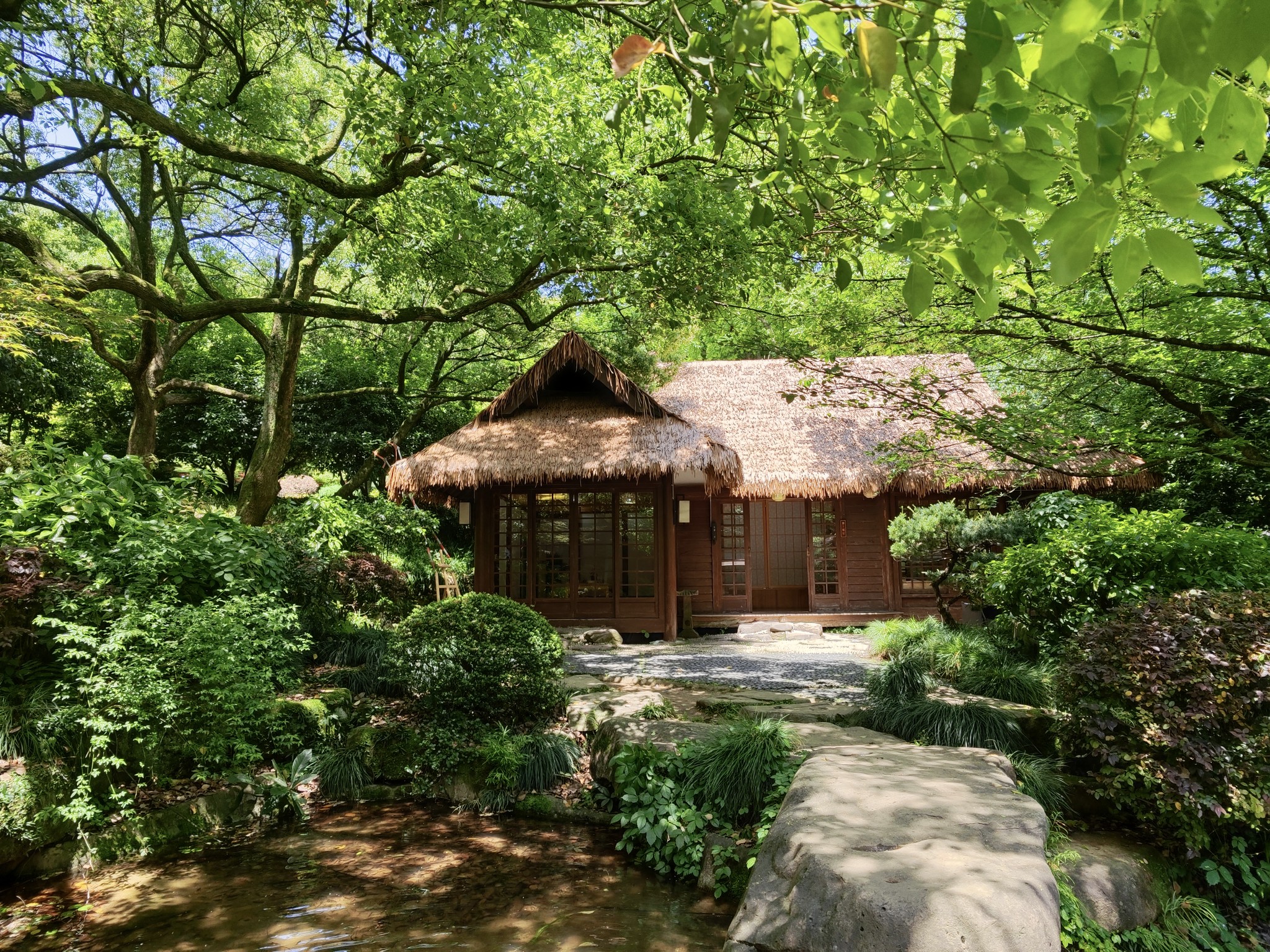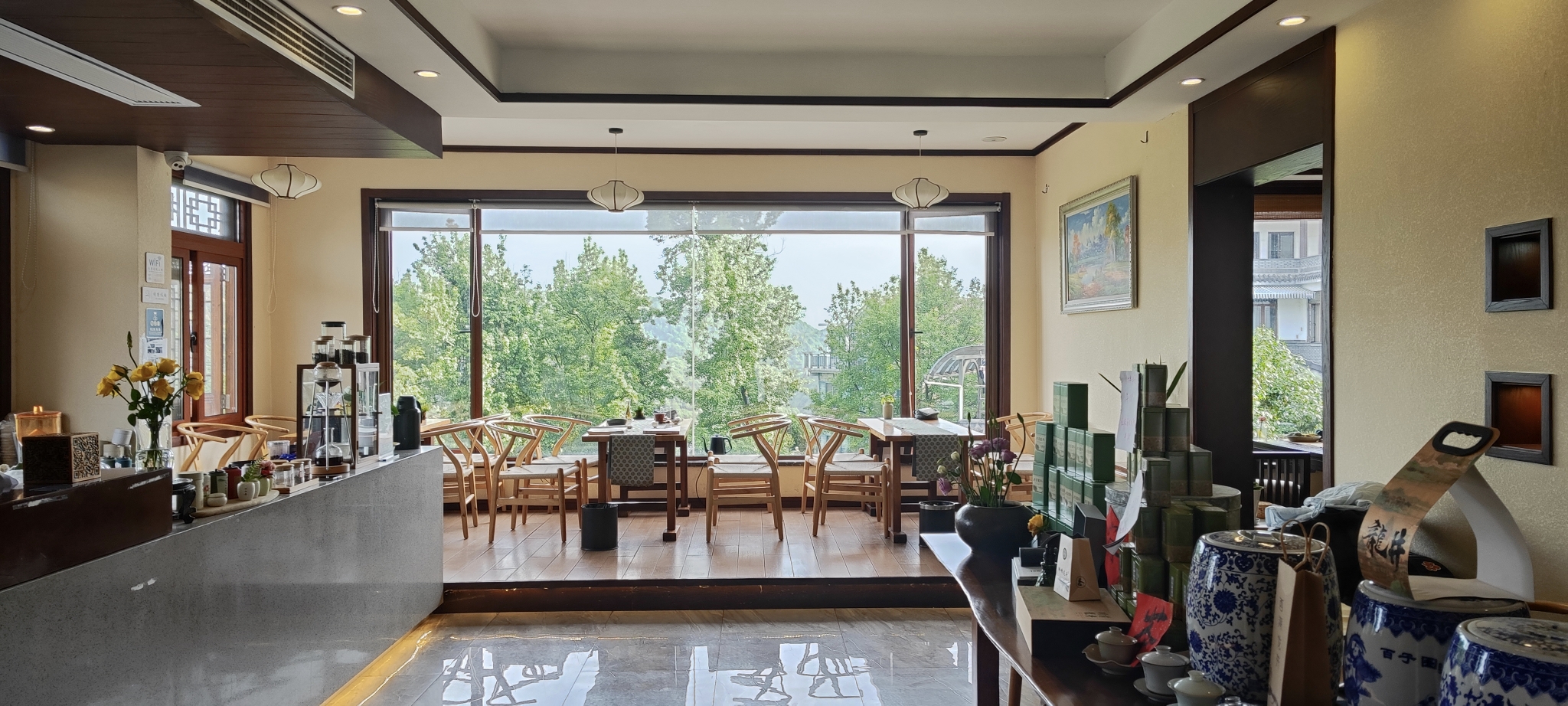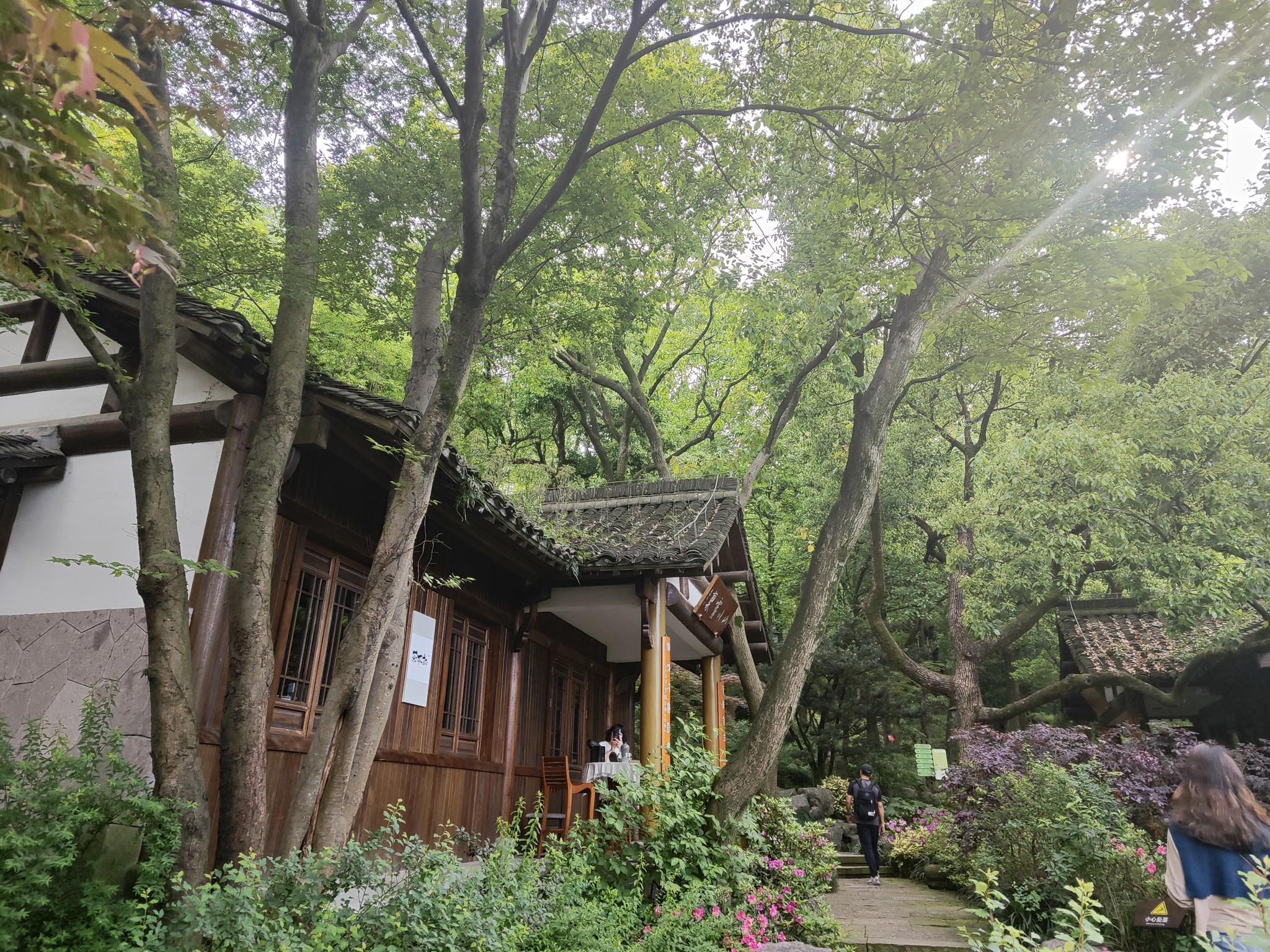 和双峰馆的风格完全不同。双峰馆像一个精雕细琢的园林,而龙井馆则是依山而建,少了几分人工雕饰,与大自然融为一体。
