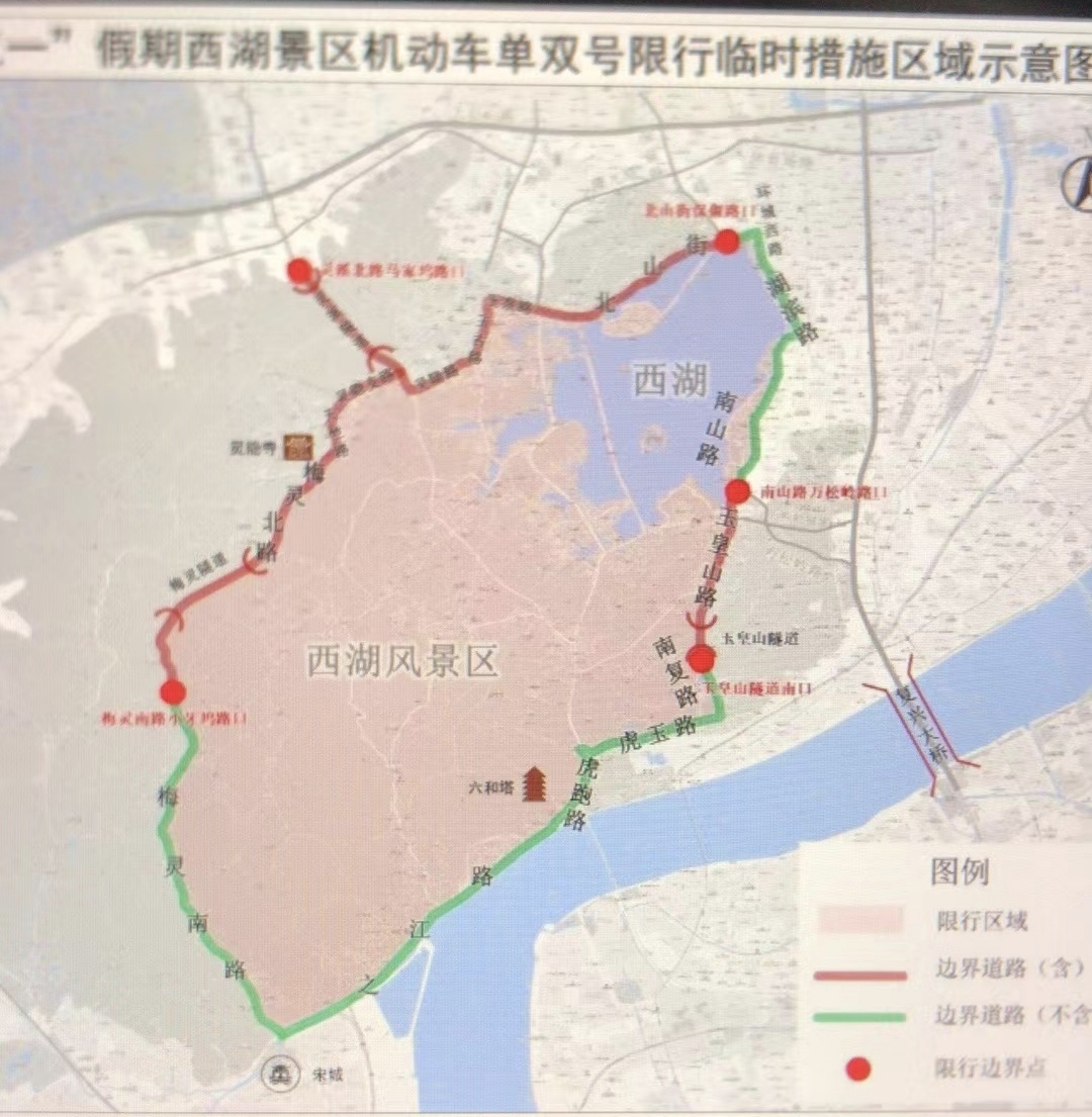 下图的范围就是整个西湖限行区了。