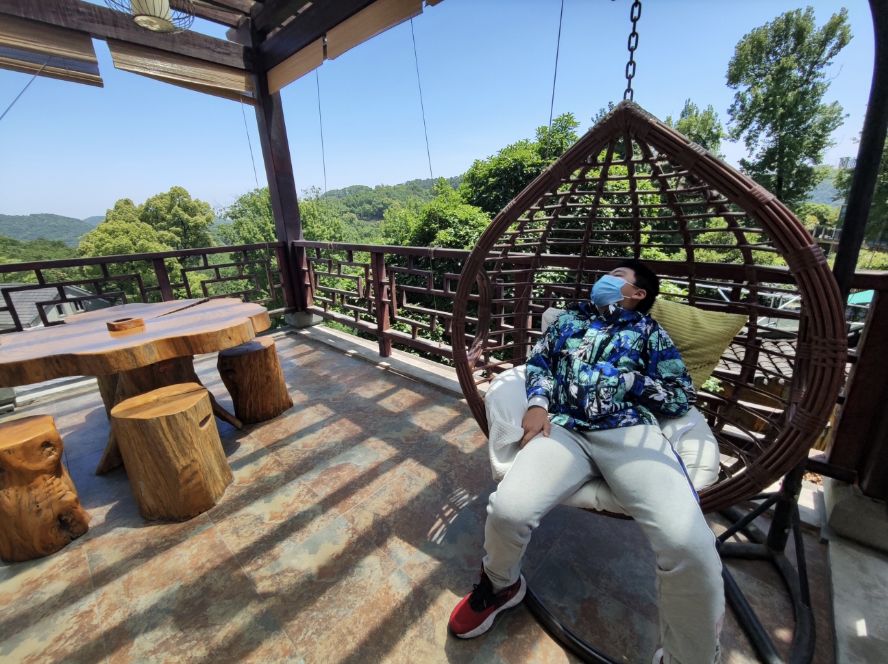 预订的是一个带有露台的房型,孩子一到房间就舒服的睡进摇椅里,全身都放松了。