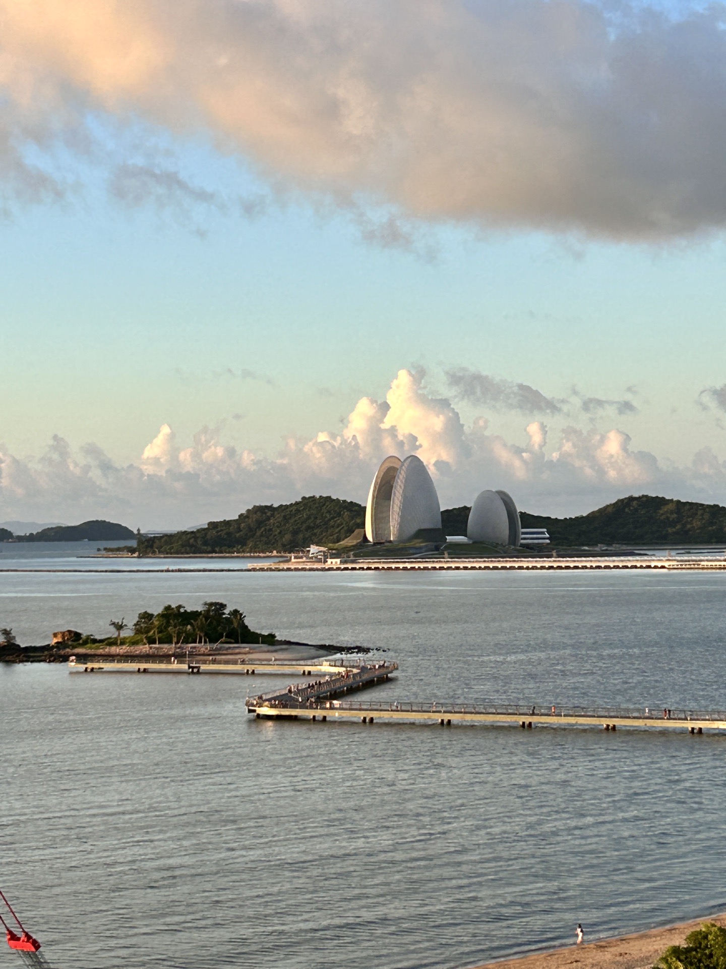 很快就来到海天凤凰湾公寓,check in,我们预定的是海景商务房,推开门,拉开窗帘,哇,名副其实的海景啊,太漂亮喇,还能看到对面的日月贝(日月贝其实就是珠海歌剧院)。