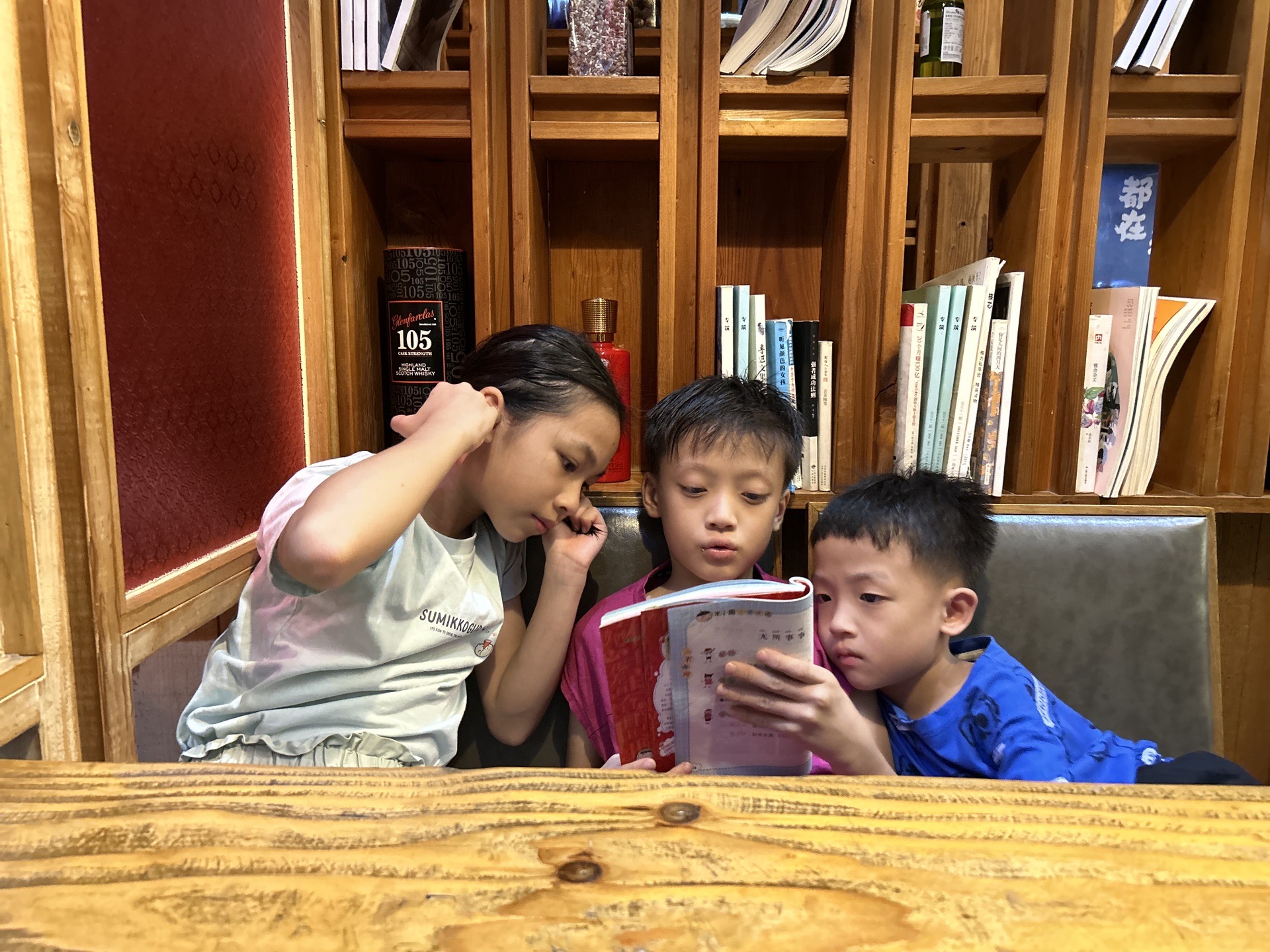 渐渐的,天终于黑了,我们依依不舍的回到公寓,洗刷一翻后,直接在楼下解决了晚餐。这三个孩子这么认真么,饭前还不忘看书。