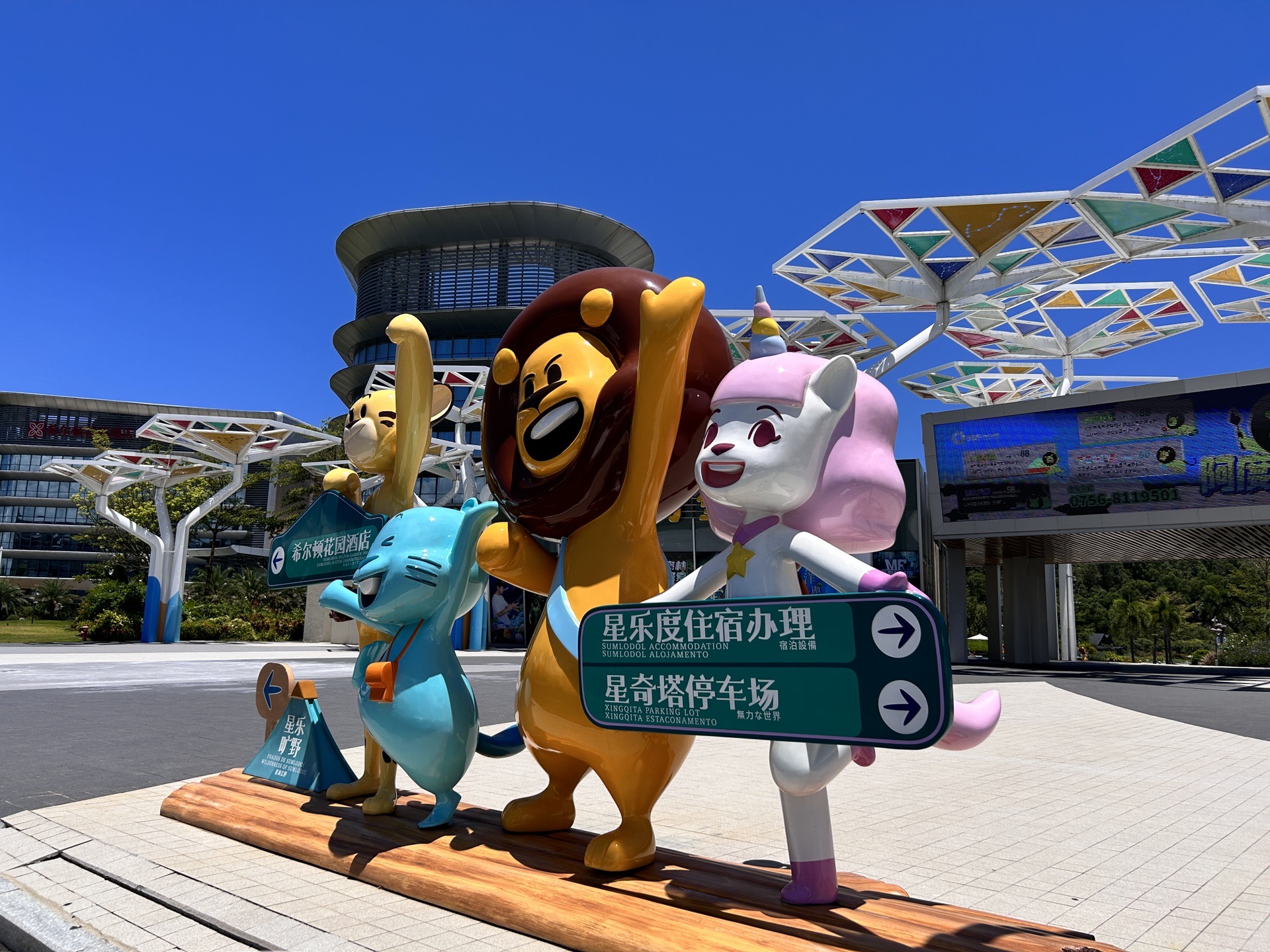 到星乐度车程大约50分钟,周日的珠海,马路上车水马龙。越发接近露营小镇时,车越来越少了,可见露营小镇还是挺偏僻的。孩子们可乐坏了,终于到达心碎碎念的乐园。看着这入口,顿时感到热浪滚滚。