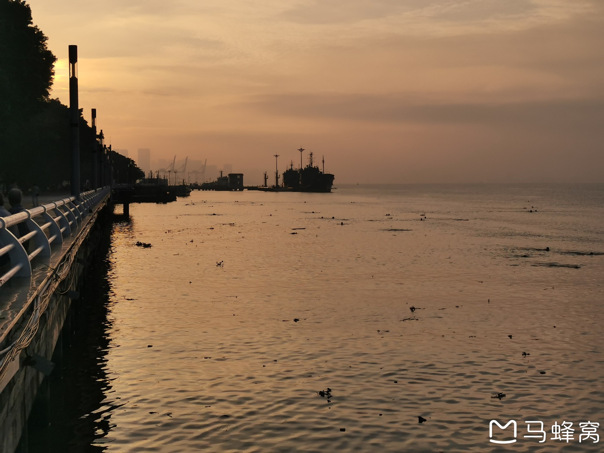 晨曦将江面染成橘红色,岸边停泊的舰船也被勾勒出浅浅的剪影,江中晨泳的还是老者居多,古炮台虽已成历史,军港码头出早操喊口号的传统还是不能丢的。