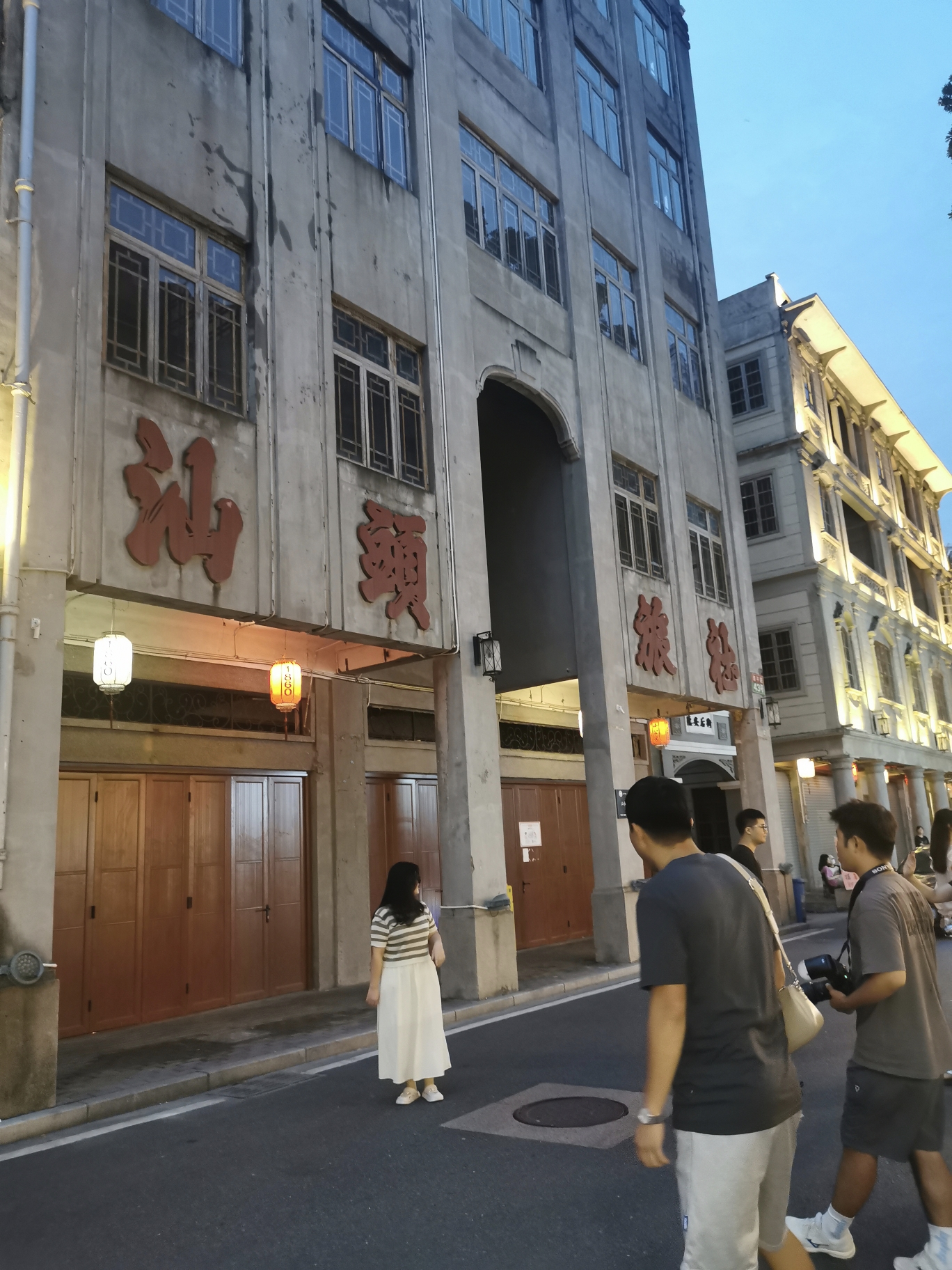 小公园打卡直播的人从众,街道两侧骑楼上挂满了形形色色的商铺和公司牌匾,如此可见仿古街已是每个旅游城市的标配。巷子里许多老屋古厝破败不堪,即便这样还是有许多原住民在里面生活。徒步走到西堤公园未见到礐石大桥上的落日与晚霞,待华灯初上,老城内饱经沧桑的骑楼在轮廓灯的勾画下,焕发出曾经的荣光与繁华,汕头旅社门前摆拍的年轻人轮番登场,霓虹灯下喧嚣的夜生活才刚刚拉开大幕。