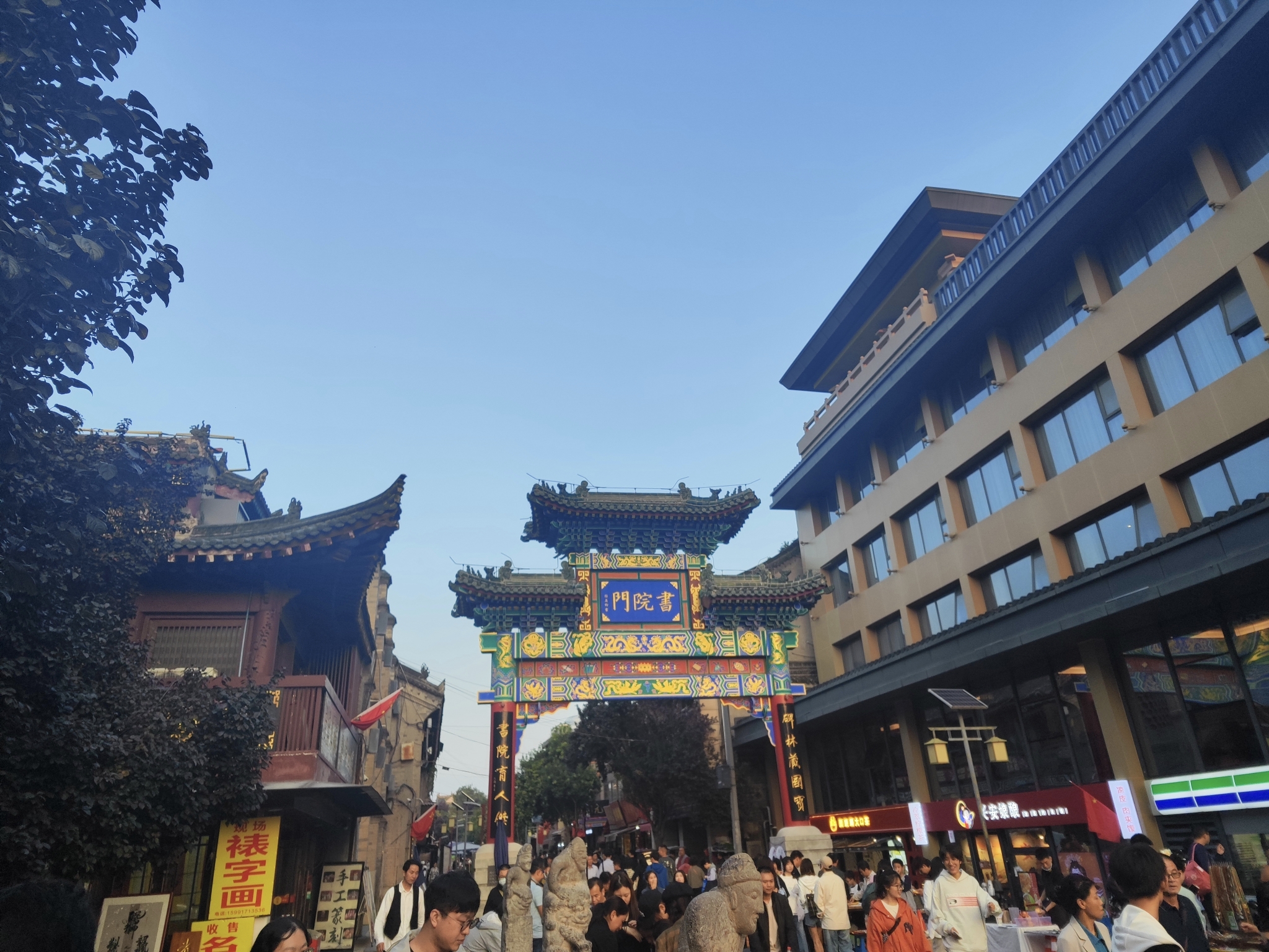 第一天下飞机,时间已经有点晚了。直接前往城墙附近的餐馆用餐。餐馆就在书院门旁边。没想到一到西安就来到了一个网红景点。