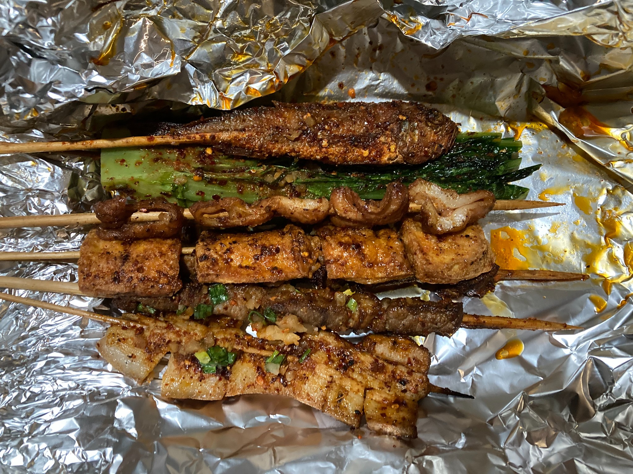 昨晚吃过藏式土火锅,今晚来点藏式烧烤(据说藏式烧烤有很多种,今天这种是先把串串过油轻炸一下,再在炭火上烤熟)。