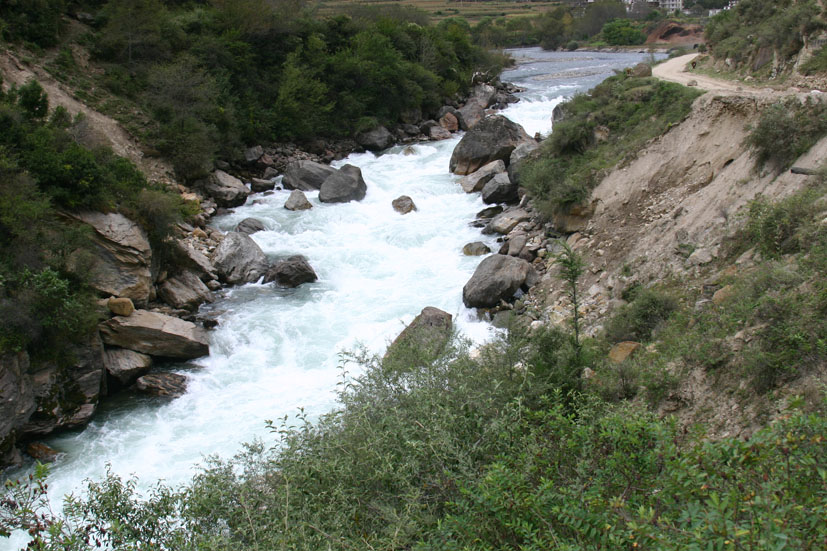 前往党岭的路并不好走,颇为颠簸。一边是如脱缰野马般奔腾而下的江水,与狭窄的山谷较着劲,不时碰撞出激昂的一幕,水花飞溅、雾气四处飘散。一边是云雾缭绕的山岭,高低起伏,被层层的雾气分割,山路回旋盘绕其中,时隐时现,而在半山腰,美丽的藏寨隐藏在青山绿水之间,秋意就这样慢慢呈现在眼前
