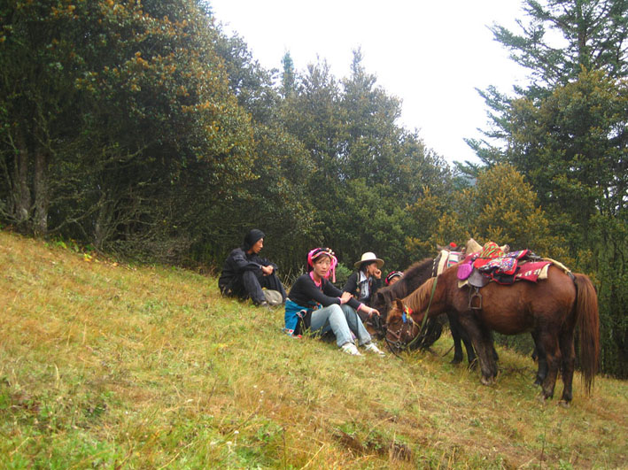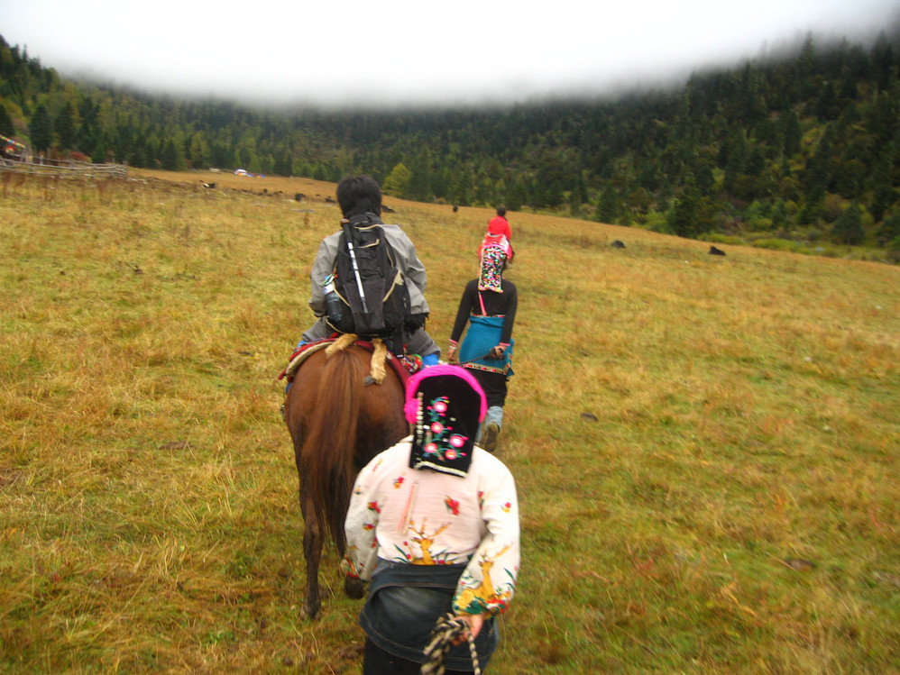 在飞机坪这里下马。牵马的妹妹讲:春天的时候鲜花开满了整个飞机坪,非常的漂亮。这个时候就没有了。