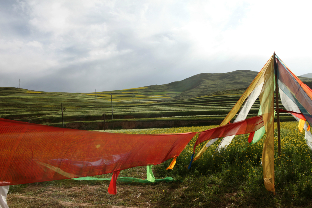 还有那随风舞动的五彩经幡,一堆堆矗立的玛尼石,那洁白的烟雾缭绕的煨桑塔,庄严神圣的寺庙,散发着神光的金顶,我,很想。。。。。。
