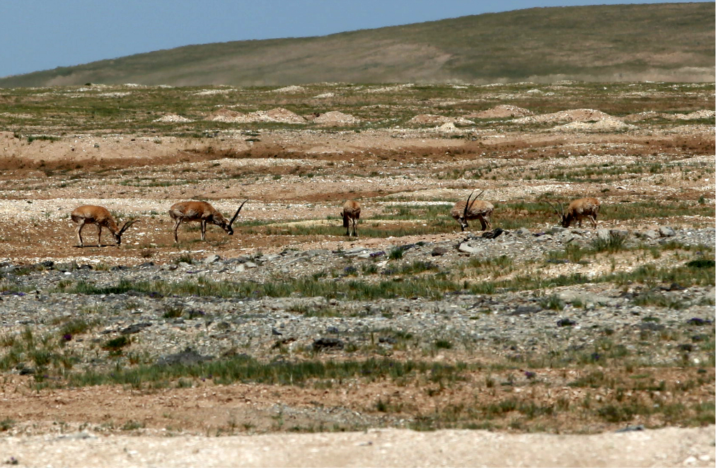 可可西里 ,藏羚羊保护的还可以,路边上总有悠闲自得低头吃草的几只,如果不惊吓它们,还是可以和它们相互对视一会儿的。