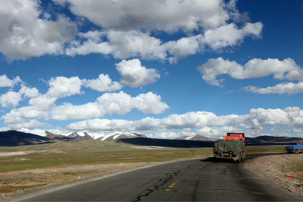 巍巍昆仑山 脉,在稀薄的空气下,人,车,一切一切都显得如此渺小