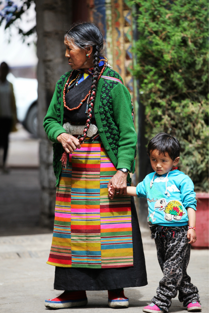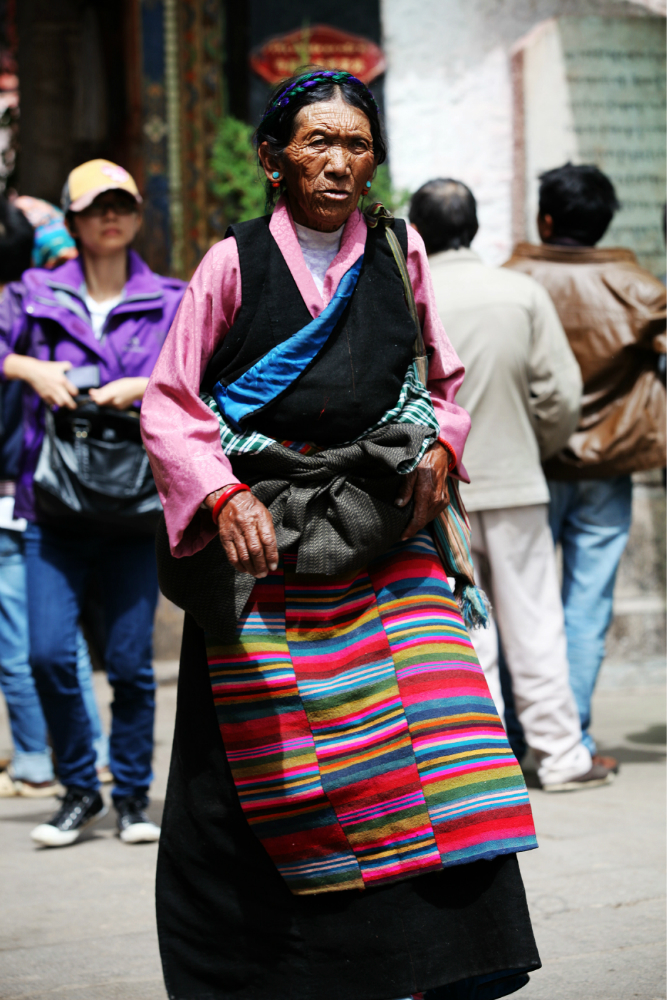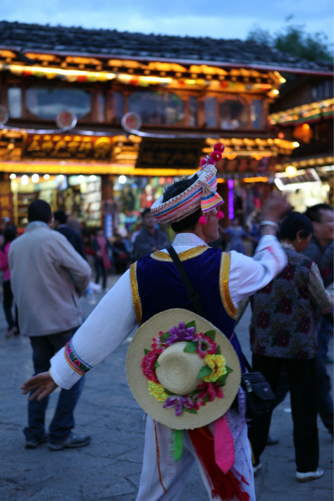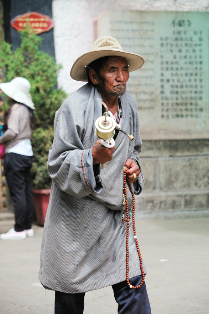独克宗古城里面跳锅庄的老大爷。
