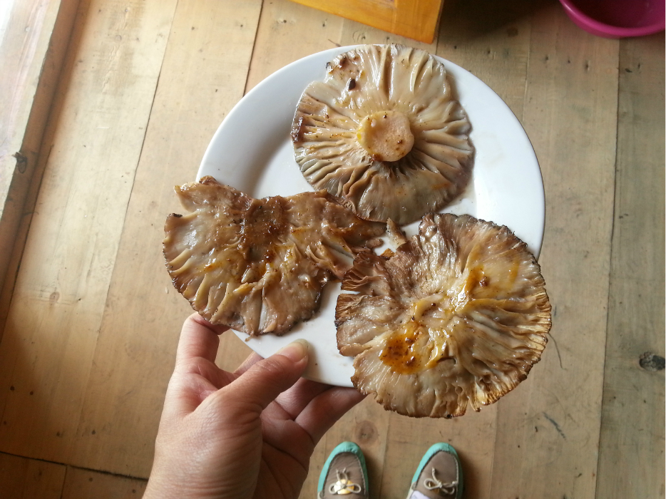 刚摘的蘑菇放在铜炉上刷上酥油烤熟,味道那叫一个香美!