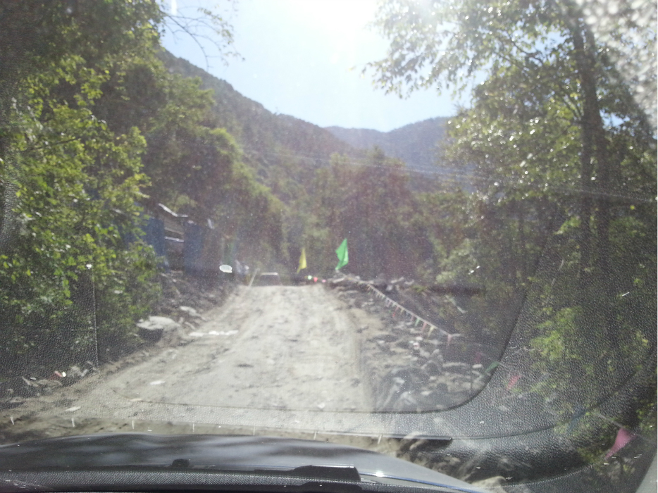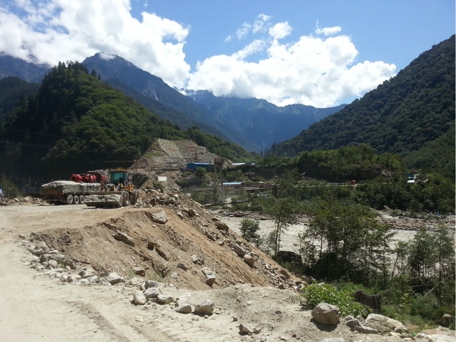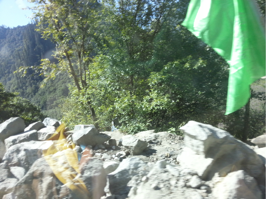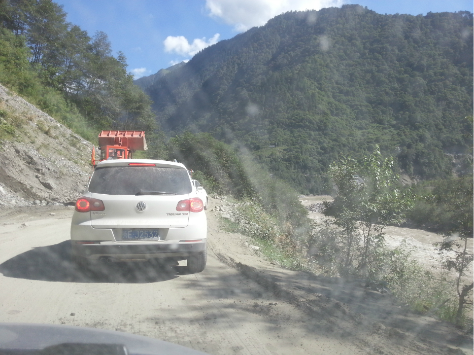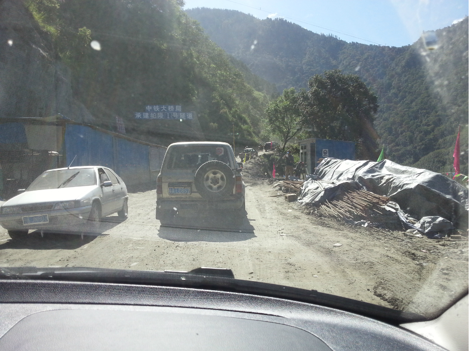从鲁朗出来没多久就到了通麦天险,十四公里的沿江路段,现在正在施工,打隧道,尘土飞扬,坑洼不平。