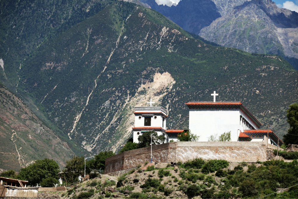 在盐井 有一种独特的人文景观必须要了解。盐井 分为上下盐井 ,仅有一条沟相隔,但却存在不同的宗教文化。上盐井 信仰天主教,下盐井 信仰藏传佛教。两种宗教和平 共处,有的一个家庭不同成员信仰不同宗教,除信仰外,生产生活一切相同,这不能不叫人称奇。