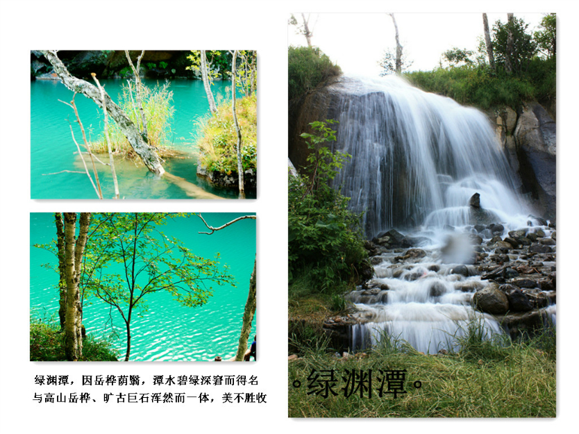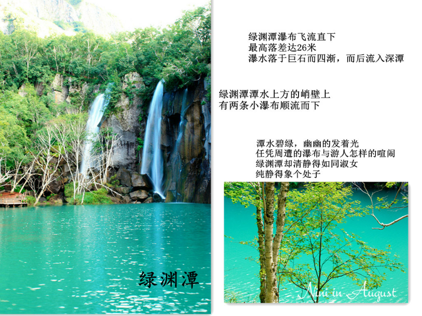 从天池坐越野车下山。停后换倒站车去瀑布,瀑布跟温泉是一个景点,瀑布不让靠近因此也体会不出有多恢弘。温泉鸡蛋绝对值得一吃,因为别的地方真的买不到,蛋清像果冻,蛋黄特别香。天池都看到了小天池就不用去了,直接去绿渊潭。绿渊潭地方不大还挺美,这里的瀑布比温泉边的瀑布更美。