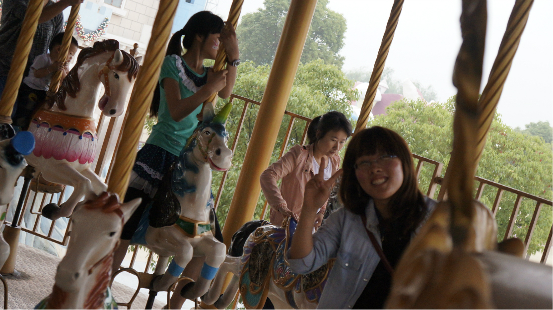 七哥总是留背影给我 坐旋转木马 搭配王菲的旋转木马才真真是最好的 但是不是 可惜了 “南瓜马车的午夜” 看到有南瓜马车 俺本来想坐个南瓜里 奈何体格太壮进不去 还是挑了匹好马一屁股坐上