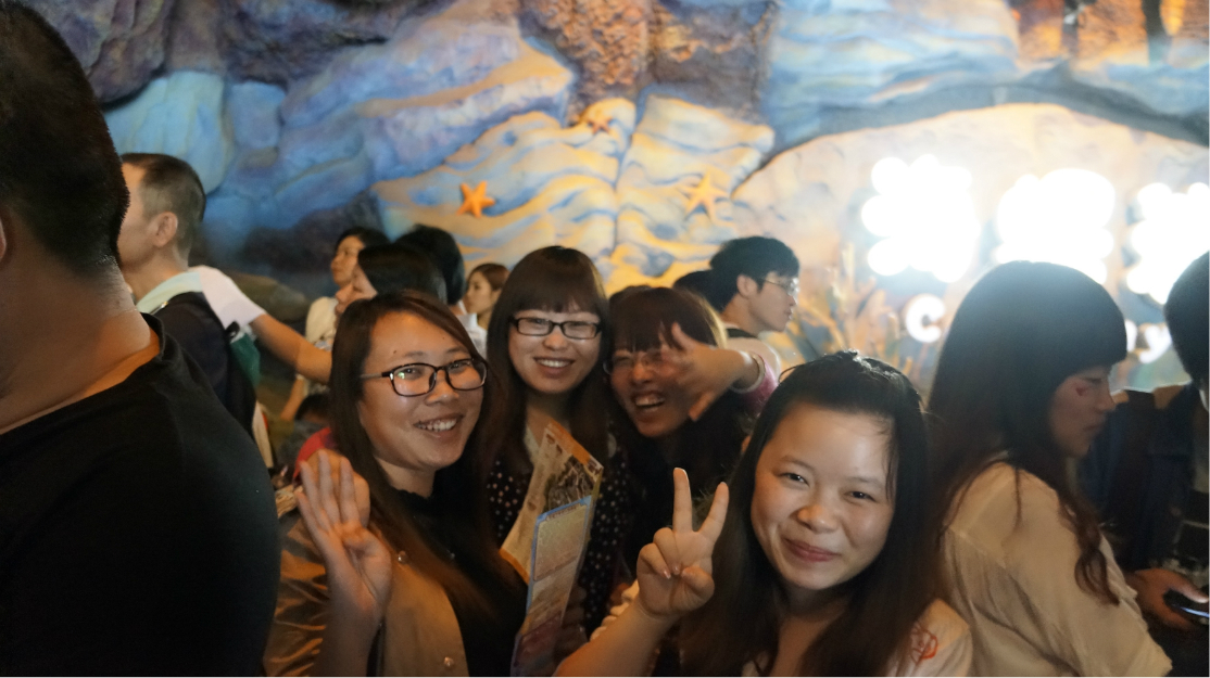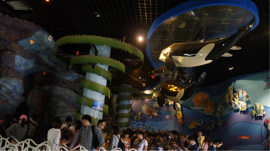 海螺湾里人真是不少 想进去还得沿着护栏绕来绕去 九曲十八弯 头顶的大白鲨 游的真自在~~说是儿童节可貌似情侣来的更多 C O W!!