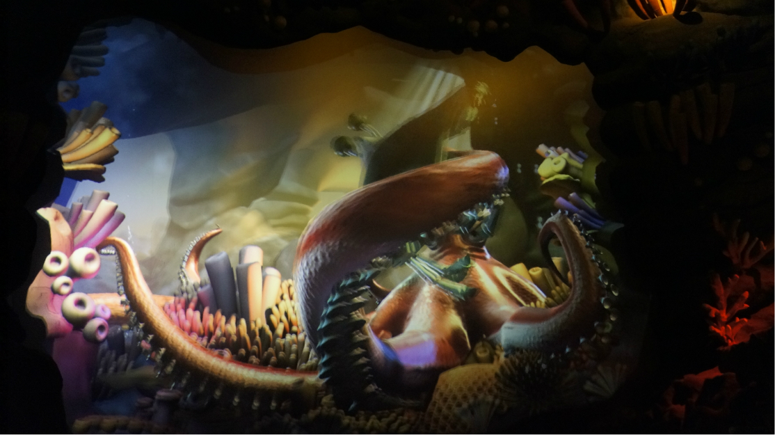 4D电影 真是又欢乐又惊悚 背景音乐很不错 我想问有没有孩子被大章鱼吓傻的 我想直视淋漓的鲜血 我想面对八爪鱼掀起的海底礁石 可是看到礁石飞过了 我还是闭上了眼睛 不知道322其他几位是什么状态。。。。摘了不少钻石 捡了不少珍珠 也有蜘蛛在屁股下爬来爬去 呃呃呃 那种感觉真是令人毛骨悚然 又。。。恶心。。。。