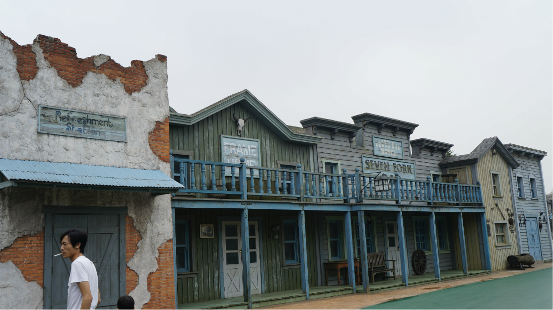 长幅版的不见了 右边半截是一大群黑人坐在一蓝色车里 大概还有只恐龙 这应该叫侏罗纪公园会比较契合吧 闻到旁边烤鱿鱼的味道 各种美食 我们找了个地坐下 把上午啃了一半的面包 喝了不少的果冻等等吃起来 噢NO.................我们要赶聊斋的场子 先路过。。。。。。。