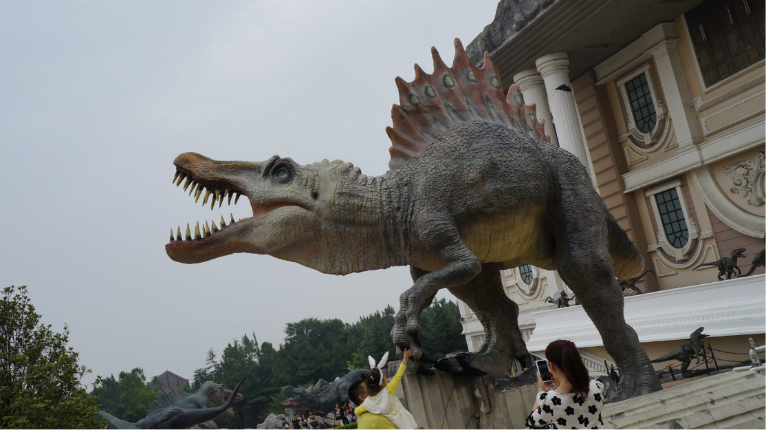 和一对夫妻玩了这个项目 那对夫妻好像年纪挺大了啊 真是好兴致 看各种恐龙张着大嘴对着你 怎一个 气质了得啊!!