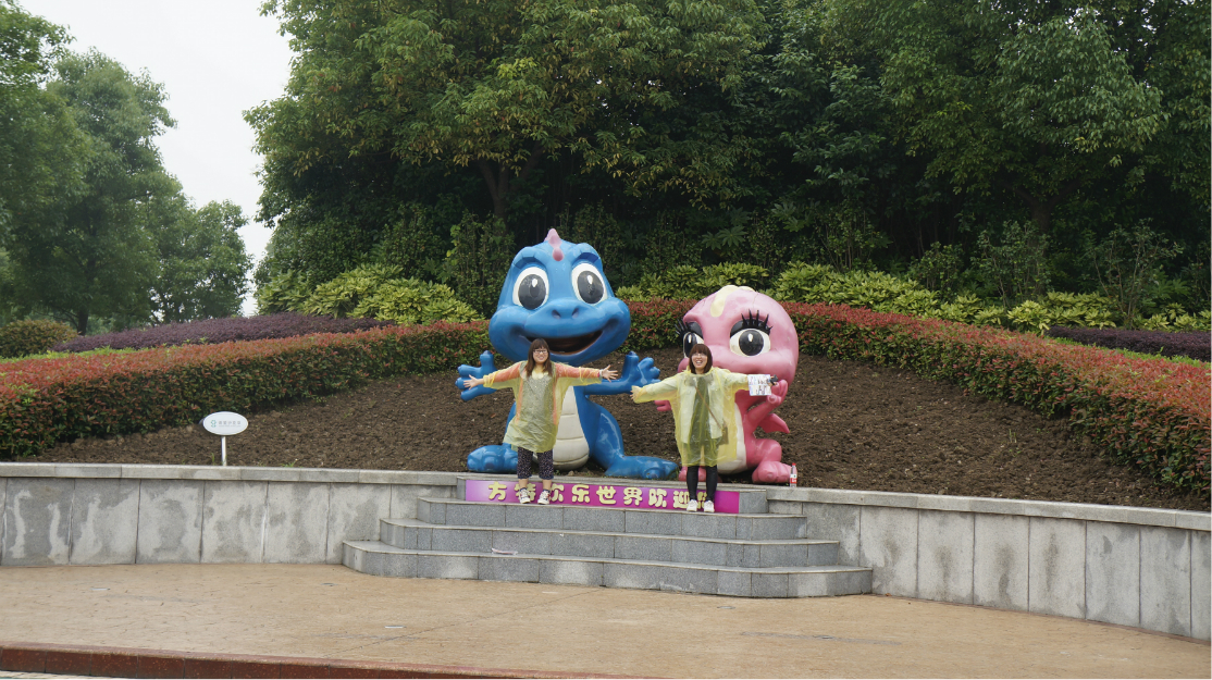 方特欢乐世界欢迎您!!老七老八欢迎您!!进了园子大家都HIGH起来了!!只看到她两在这两小龙人面前合影 还没玩大舟冲浪呢就连雨衣都穿上了 哟西!!