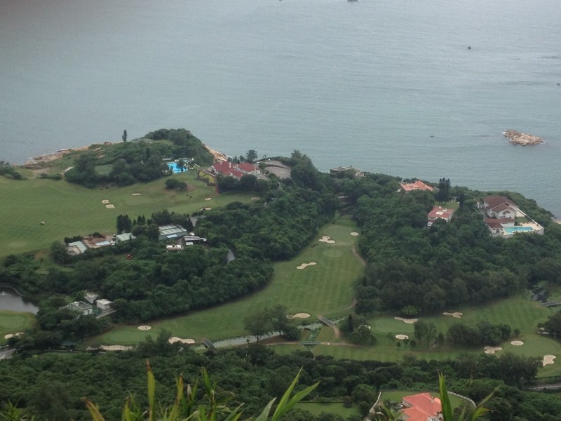 站在龙脊上向下望,见不到香港惯常的车水马龙,只见到石澳星星点点的海滨小屋,静静沐浴海风的小别墅和小巧碧绿的高尔夫球场,舒缓的感觉扑面而来