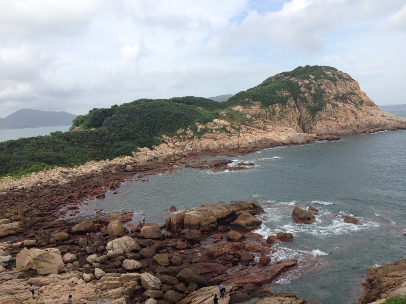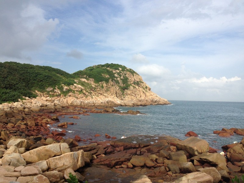 石澳村面海的村头,一片赤赤的石头在努力地引诱着大家的好奇,走近才发现,红石对面就是我们在龙脊上眺望到的小岛!更惊喜的是有一座小石桥还能连到岛上!要拍无合影的到此一游照的同学,快去啊!联想到厦门人对鼓浪屿的描述:节假日,鼓浪屿快被大家踩沉了