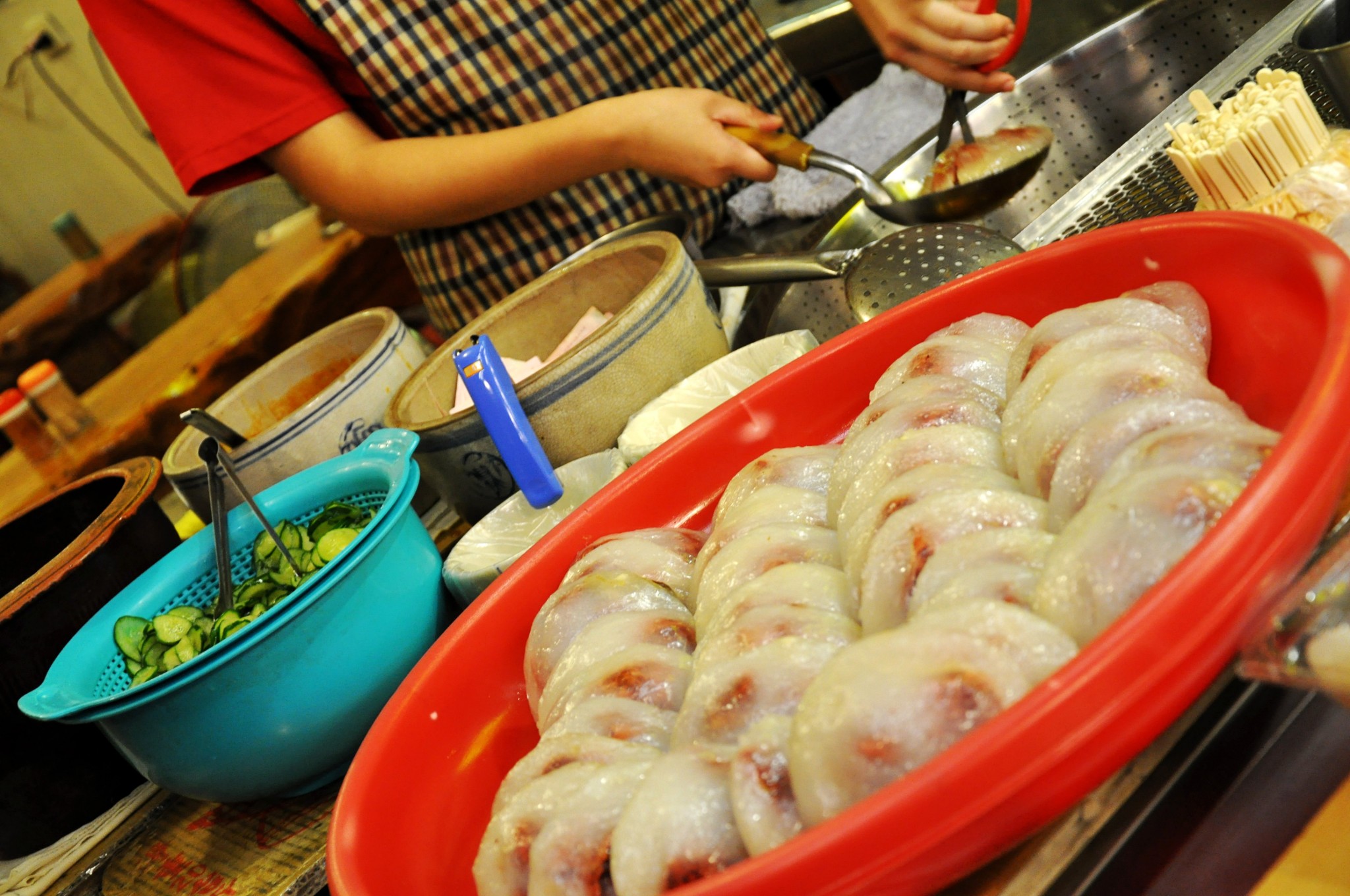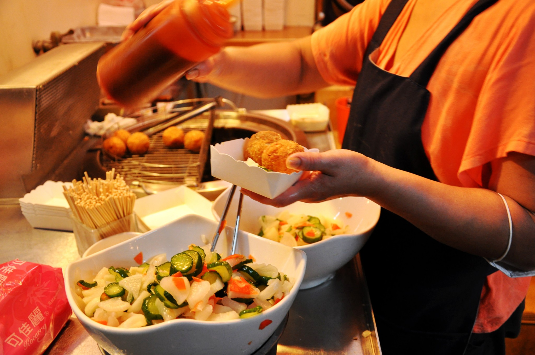 顶级甜不辣里面很多品种,俩人一份就够哦,吃完了还应该喝汤,看到很多人喝,但是我肚子很饱啦