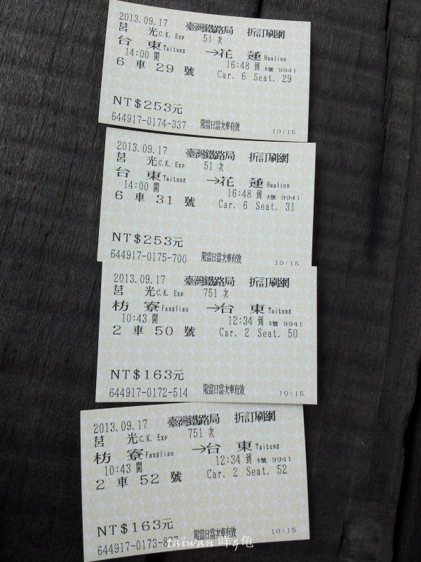 5、出发 抵达站~(都是拼音的 查起来有点累~可以事前在百度中搜站名 然后维基百科显示的那个网址进去 可以查到该站的号码~然后再找就方便了~比如 花莲 是051瑞芳是089~)