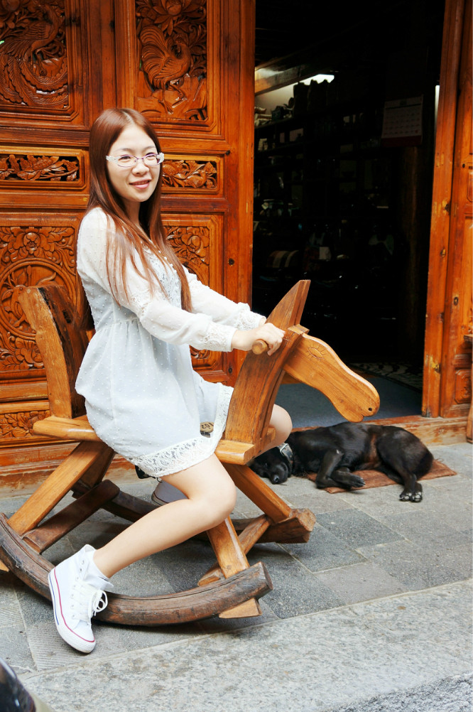 一楼的这间大屋子是客栈主人住的,也算是前台,门口的小木马很是可爱。主人养了只大黑狗,看起来有点凶,但是蛮安静的,也不叫。我还是有点怕它,所以都没有走进去看看。