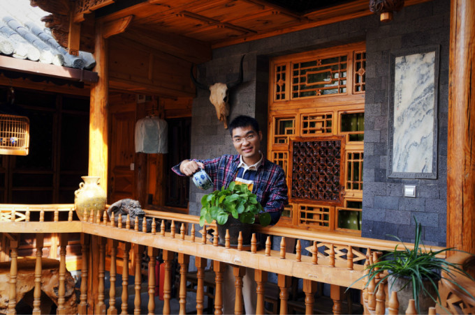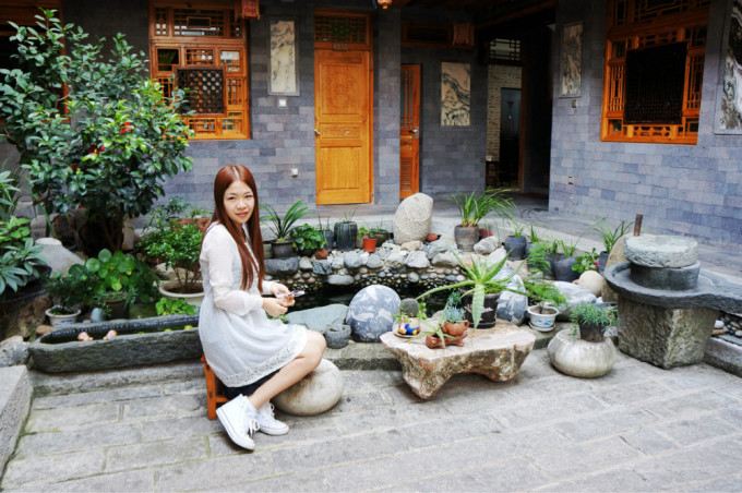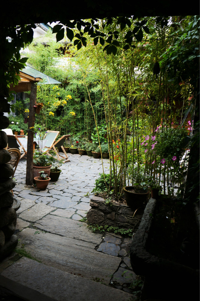 然后很顺利地就找到了客栈——“苍岳别院”,在玉洱路上的玉洱巷里,相对隐蔽,非常安静。进到院子里我就喜欢上了这个客栈——很有家的感觉,院落设计得非常精致,三层的小楼每一处都布置得很用心,房间也还算干干净净。总之,云南这一路上,这个客栈是我最喜欢的,强力推荐