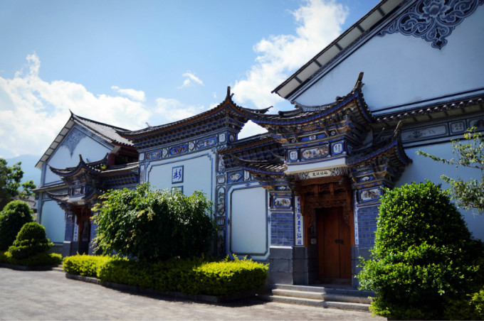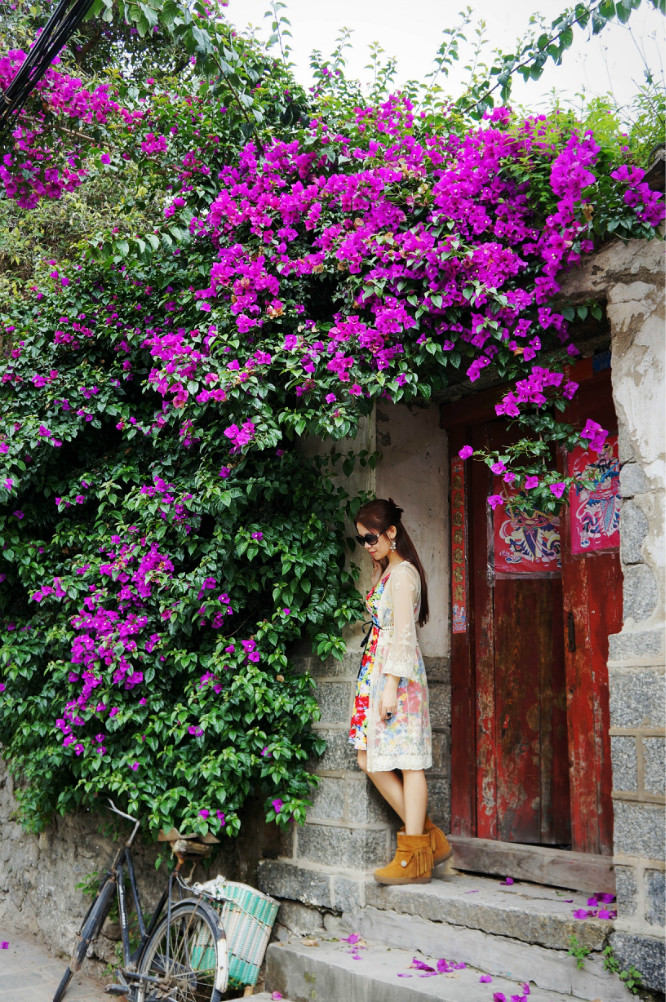 喜洲的白族民居非常有特点,白墙青瓦的配色甚是好看。很多院落的墙角探出繁茂的三角梅,更是喜人。