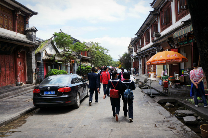 找饭馆的时候正好赶上大理的中学生们中午放学,整条街上都是穿着藏青色校服的男孩女孩,年轻得让人嫉妒。我想,他们应该是见惯了古城里熙熙攘攘的游客吧。