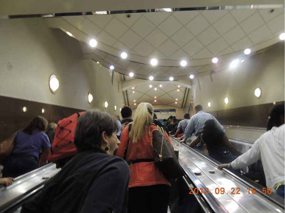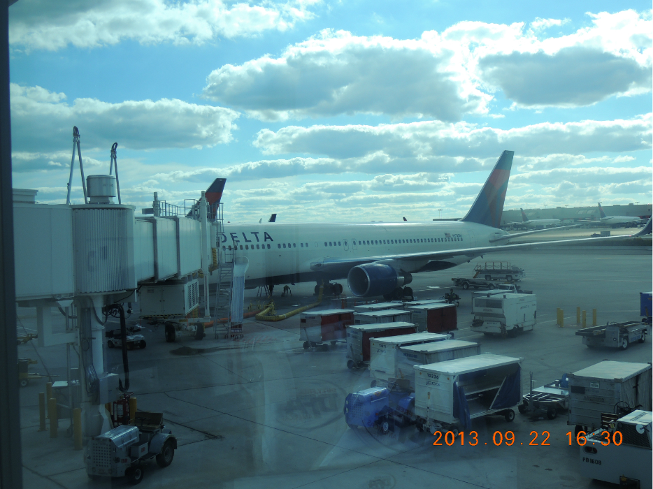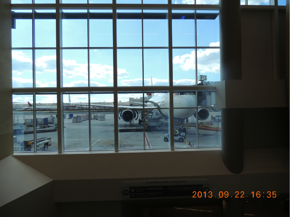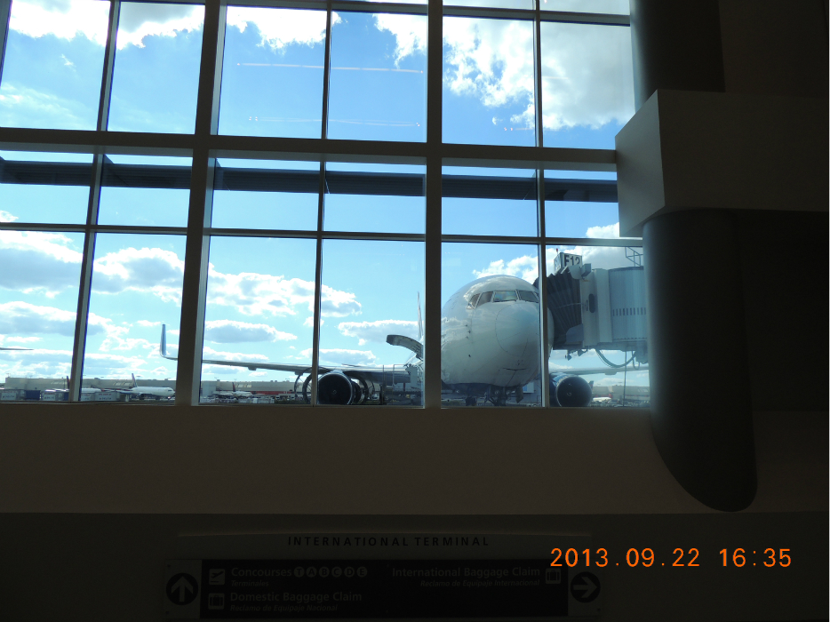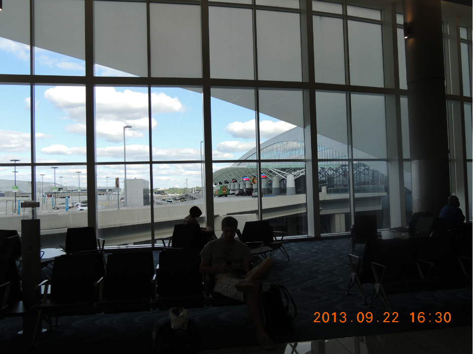 到达机场。